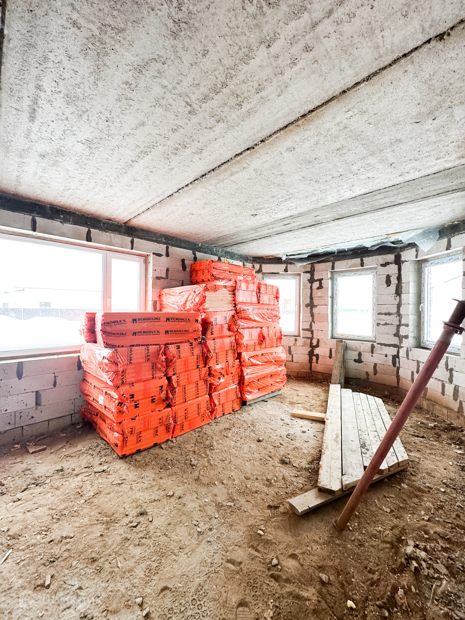 Дом в процессе достройки, будут сделаны полы (ламинат), стены обшиты гипсокартоном, натянуты потолки.