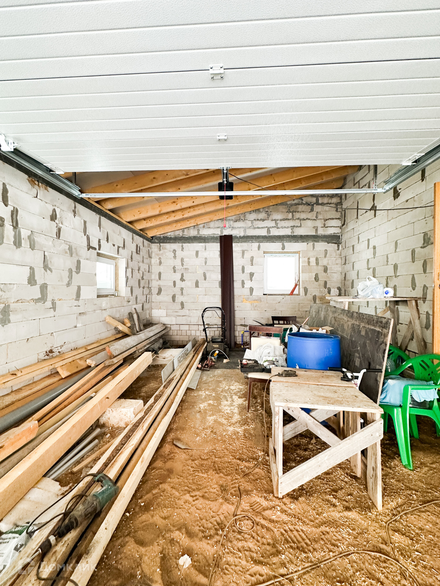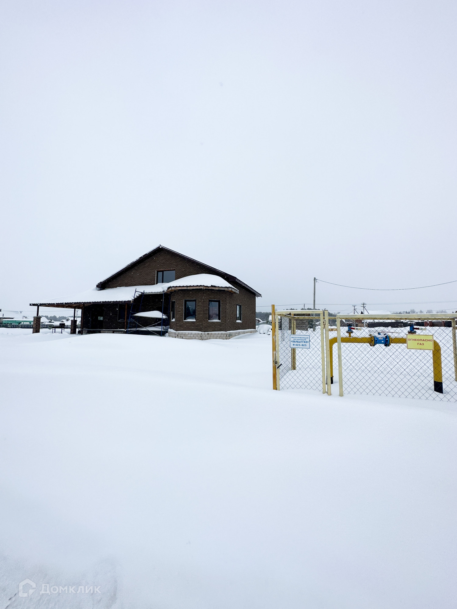 Фундамент ленточный, крыша металлочерепица. Стеклопакеты большие, двухкамерные 70 мм с ламинацией. Света в доме будет очень много. Электричество 380 Вт, канализация - кольца. Для доделки останется много стройматериалов, привезен кирпич на забор. Участок газифицирован. Скважина пробурена.