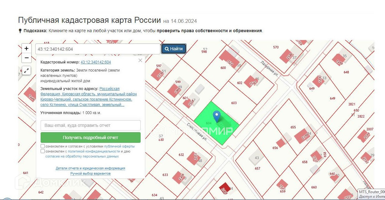 Земельный участок 10 соток  43:12:340142:604.