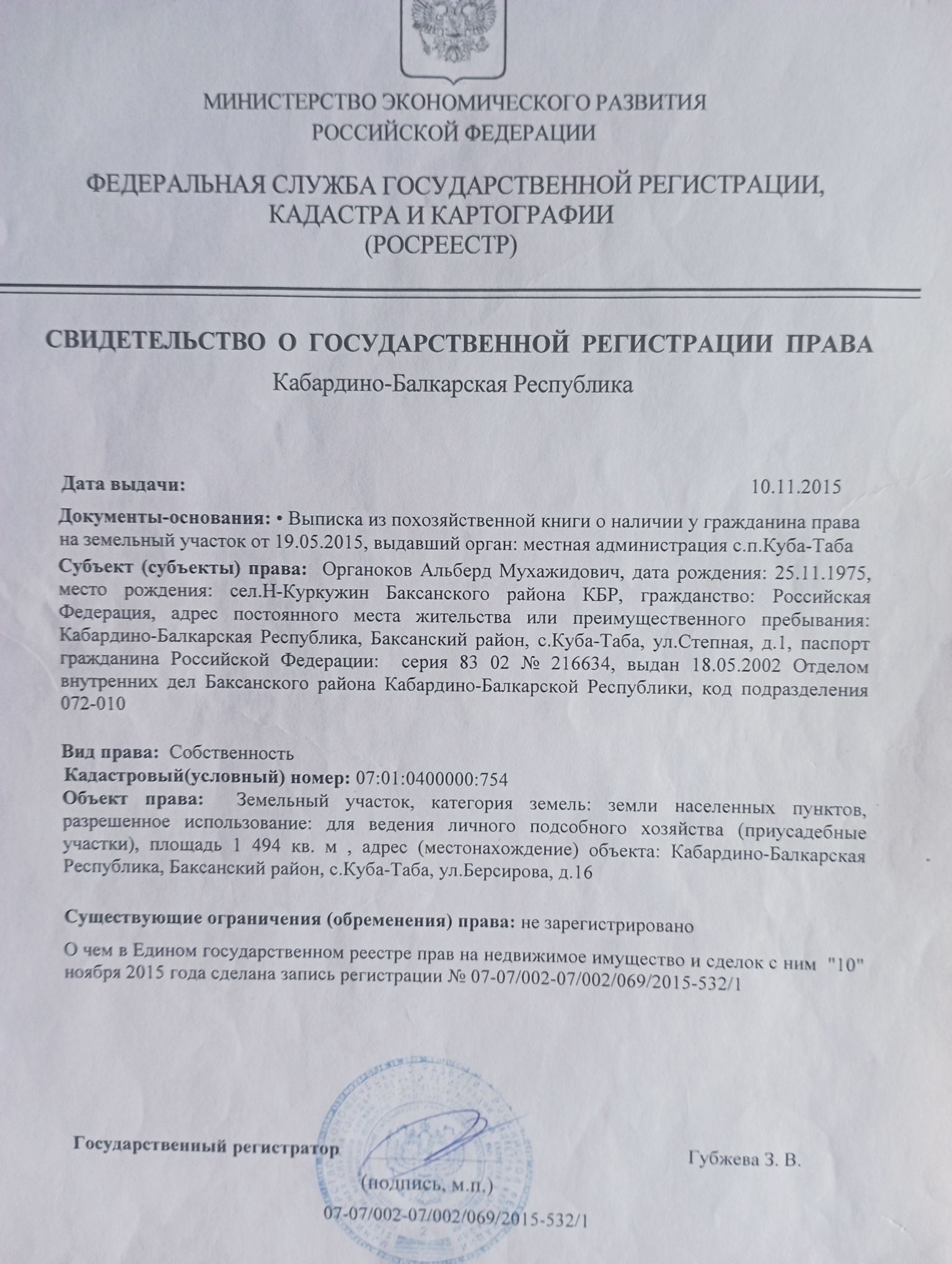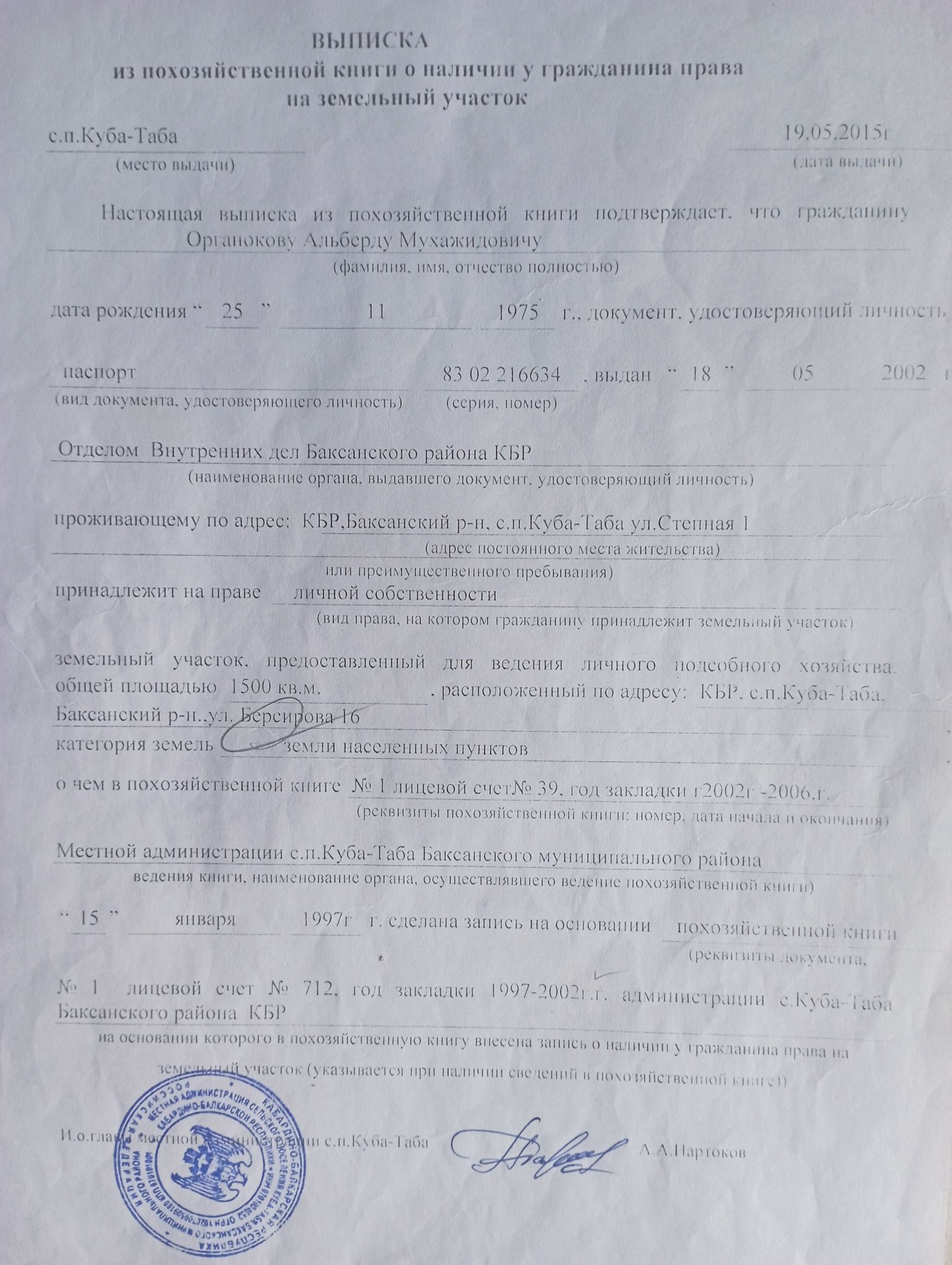 Кабардино-Балкариия, село Куба-Таба, улица Центральная Усадьба