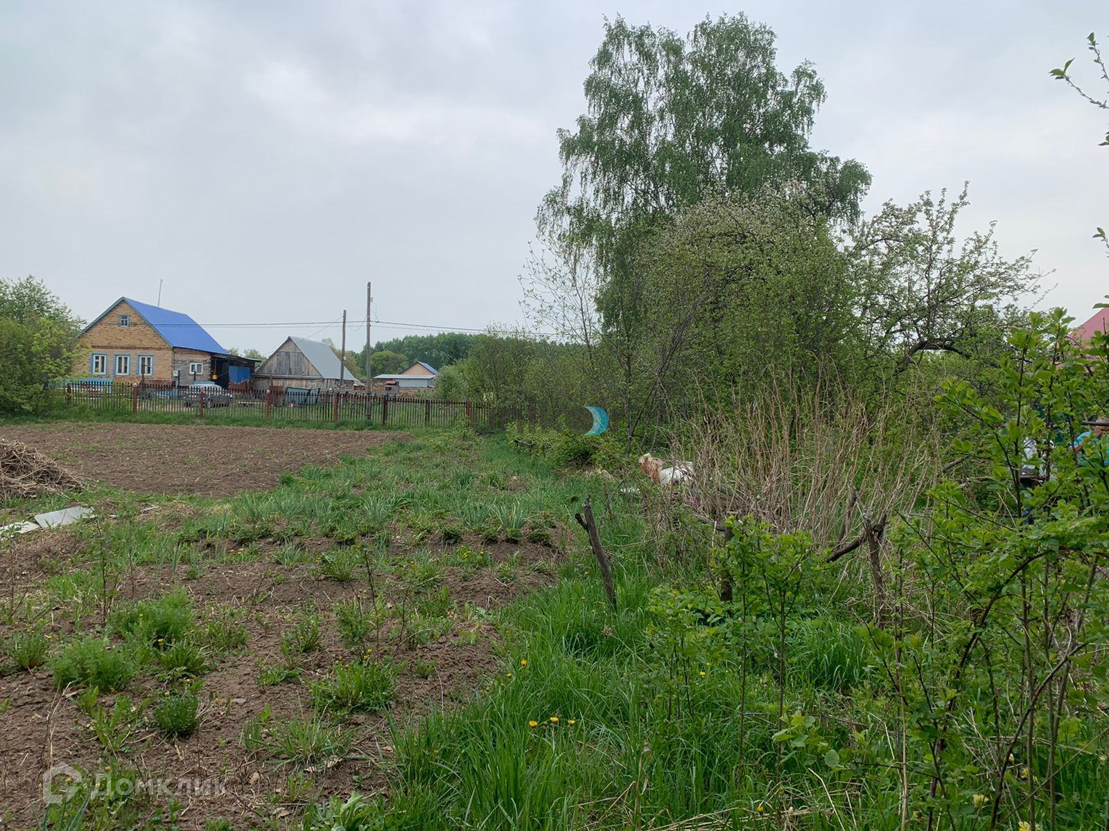 На участке яблони, черешня, смородина, клубника, облепиха и большое количество цветов. Участок ухожен. Вспахан.