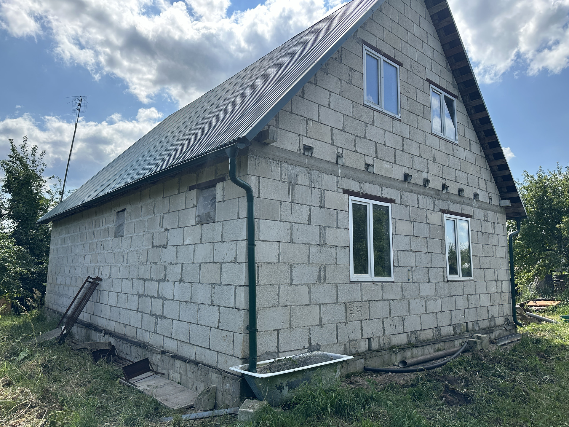 Продается недостроенный двухэтажный дом 150кв.м ( т.к фундамент больше, есть возможность достроить  и увеличить общую площадь дома + перед входом в дом есть готовый фундамент под веранду), на участке 17 сот. в пос. Кудиново, рядом с Варшавским шоссе. Коммуникации: электричество, газ, водопровод центральный, канализация септик, дорога асфальтированная. Участок угловой, очень хорошо расположен, соседи с одной стороны, по периметру живая изгородь.