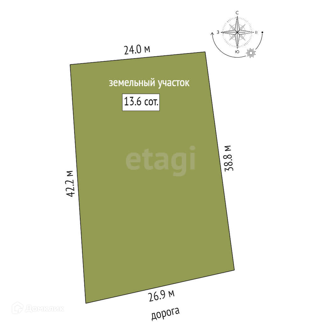 Площадь участка 13.6 сот.