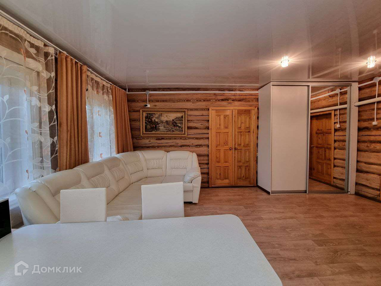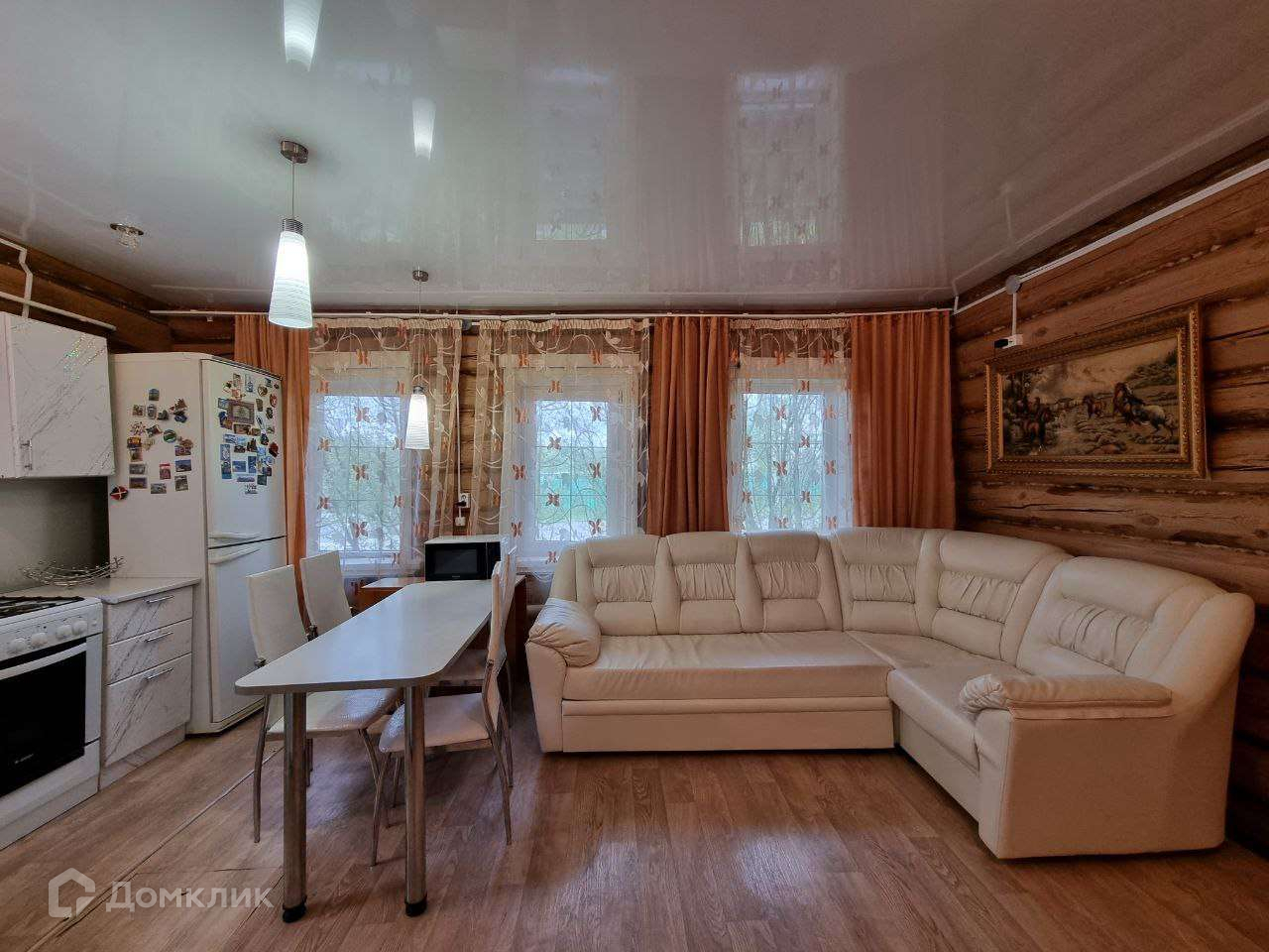 Проведено газовое отопление и центральное водоснабжение, по всему дому установлены окна ПВХ, натяжные потолки. На полу линолеум.