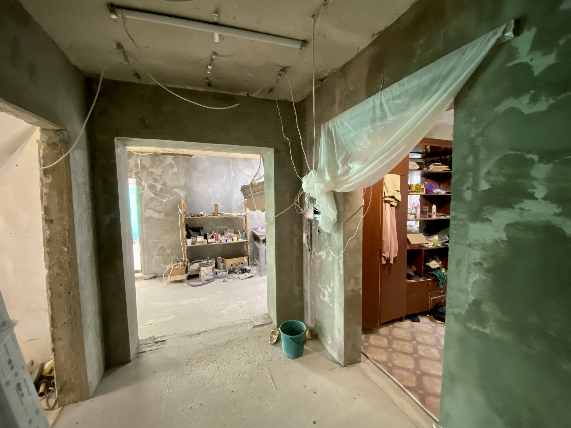 В старой части 3 комнаты , кухня и сан.узел. В планах было вместо кухни сделать еще одну комнату, а вместо туалета сделать гардеробную. Комнаты все изолированые и большие.