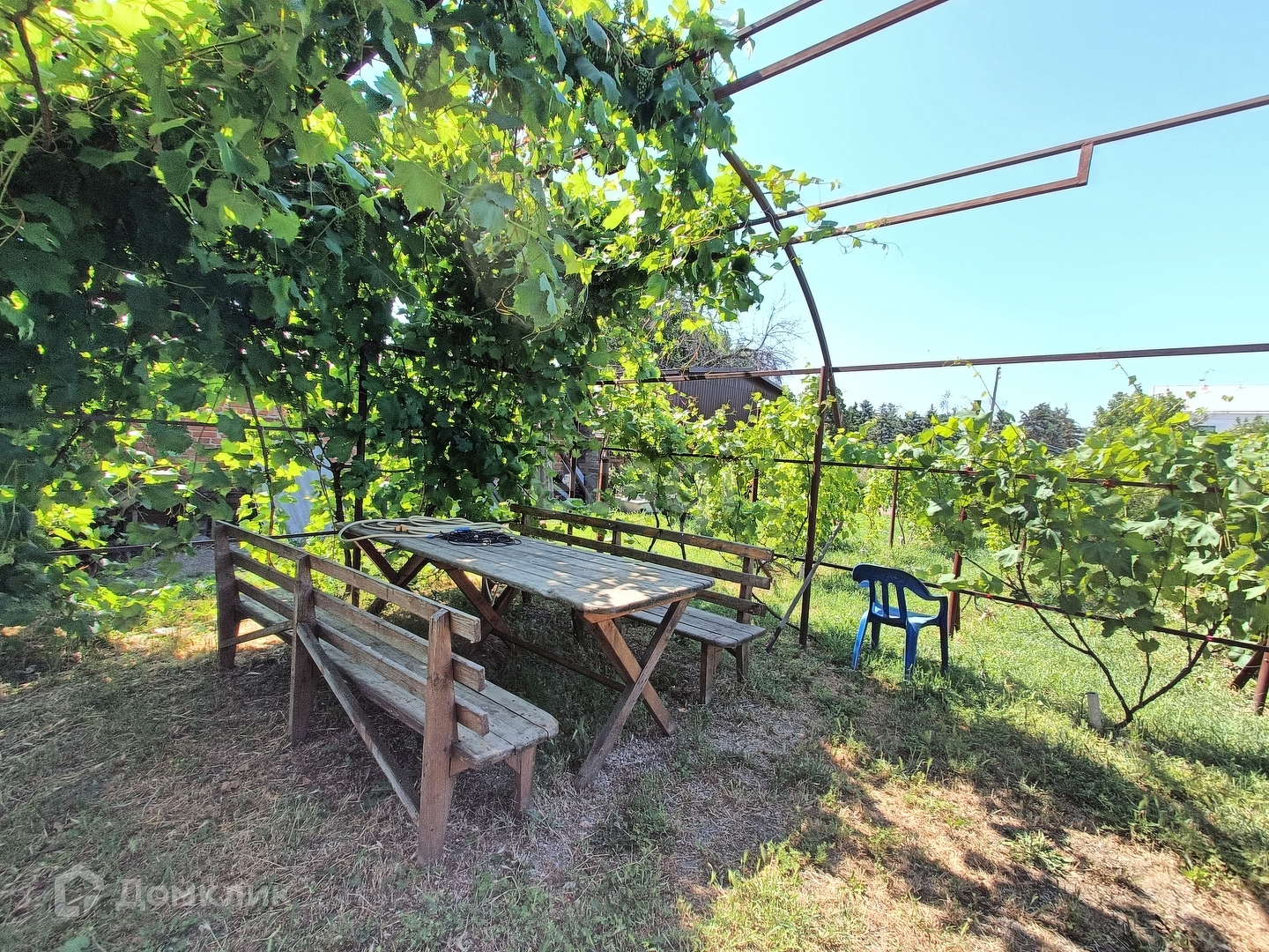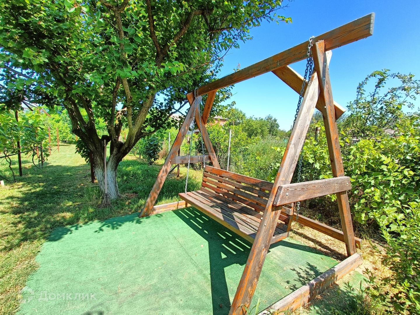На территории гараж с смотровой ямой, баня-сауна, подвал, сарай. Фруктовый сад и виноградник, оросительная система виноградника, беседка для отдыха и качели.