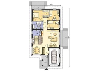 4 комнаты 3 спальни Кухня-гостиная 54 м2 2 сан.узла Гараж на 1 машину Размеры на участке: 9,8 х 19,5 м Характеристики: Фундамент: монолитная плита 300 мм Материал несущих стен: керамзитоблок 300 мм + минераловатный утеплитель 100 мм Кровля: металлочерепица Окна с двойным остеклением, подоконники на всех окнах с откосами Облицовка стен: штукатурка короед/камешковая/силикатны... |