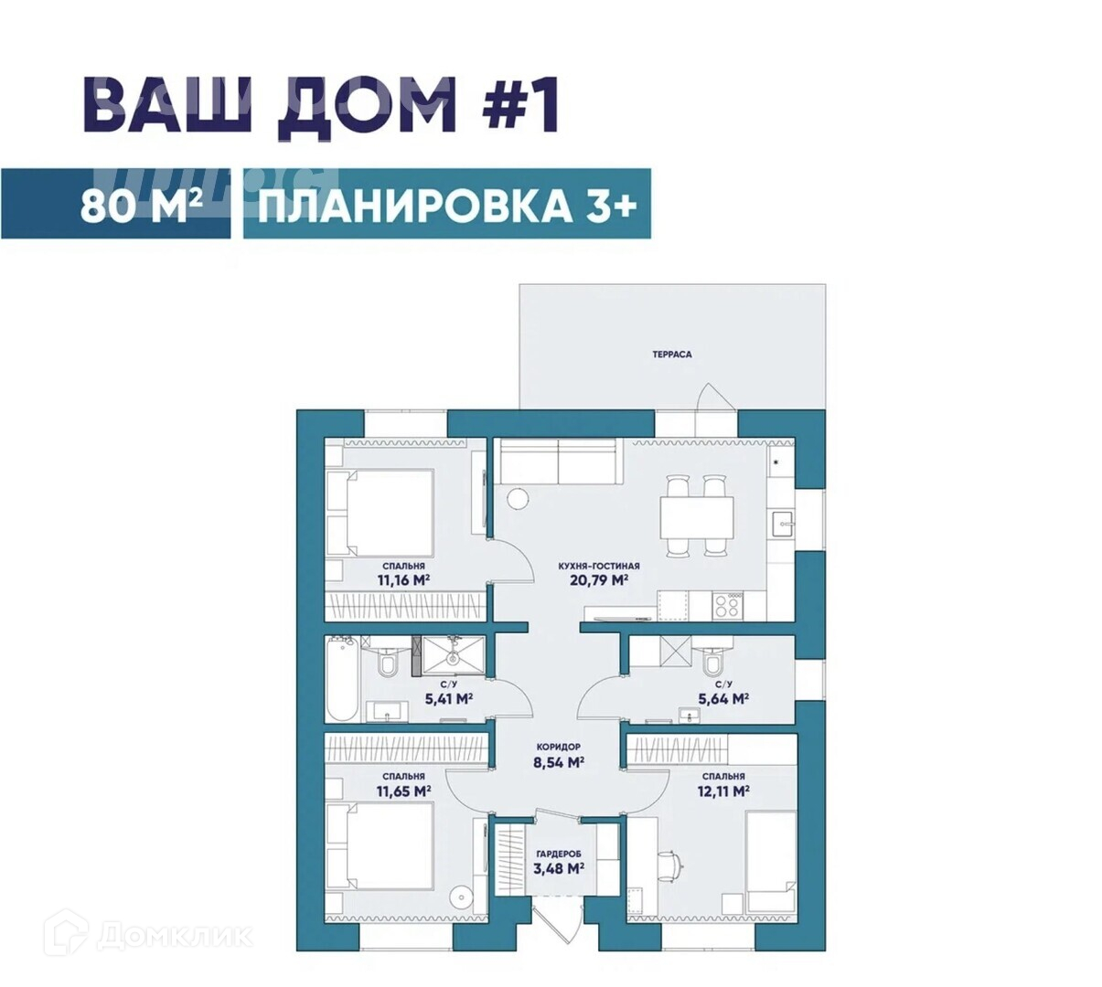 Общая площадь 80 м2