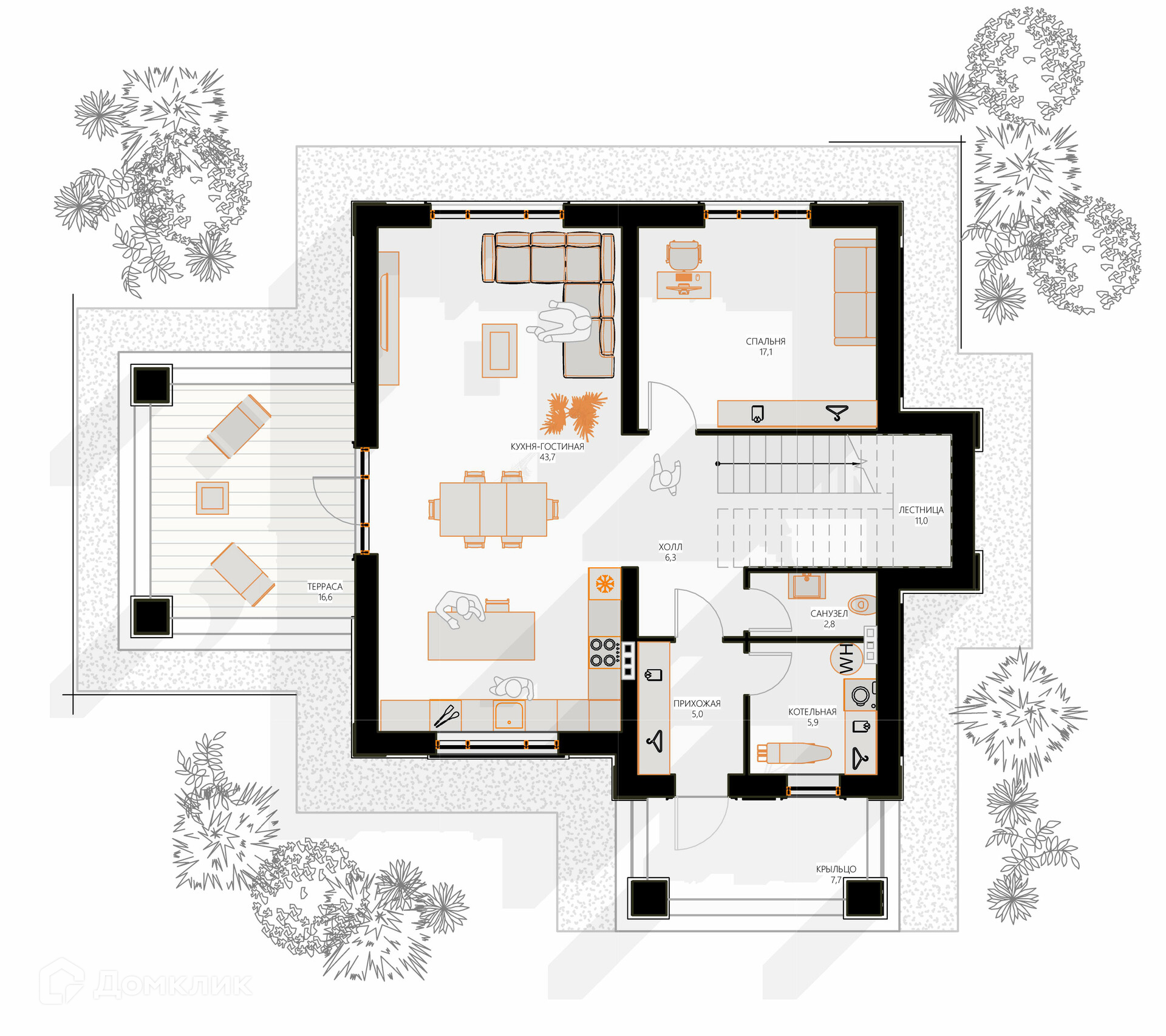 Площадь кухни 43.7 м2