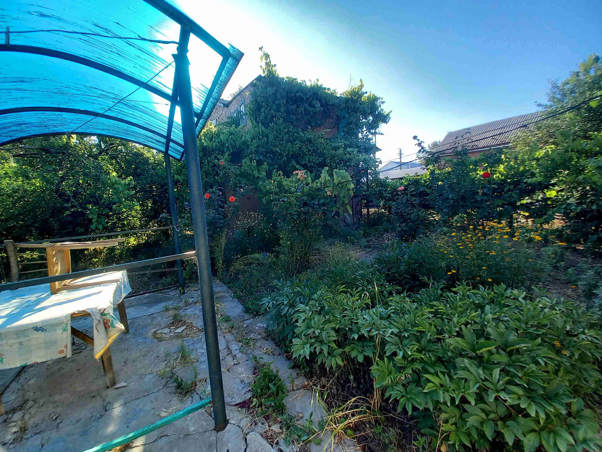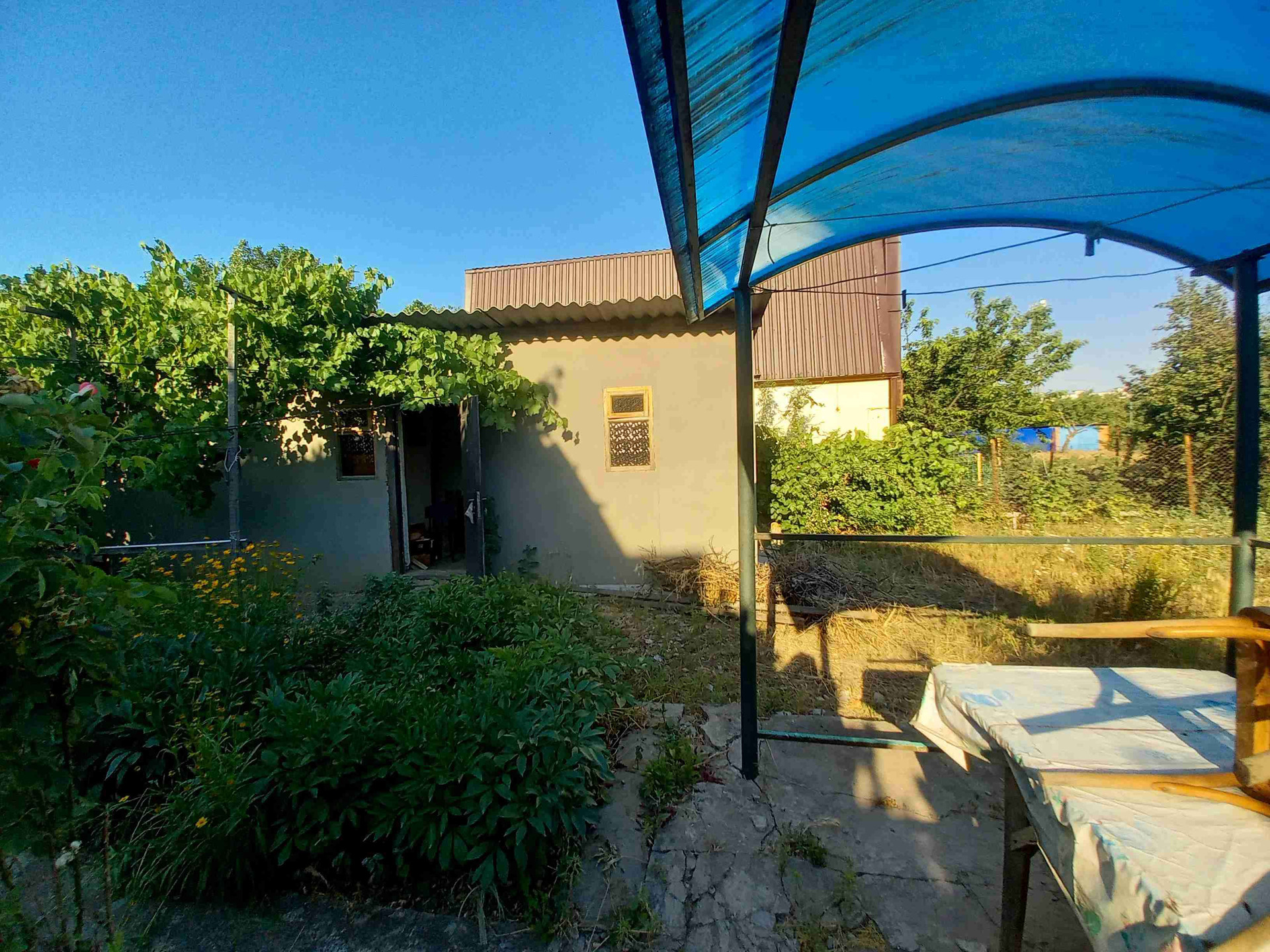 Свет ,вода во дворе,газ по меже. огороженный участок .Хоз.постройки.Беседка.