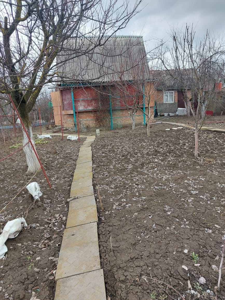 Есть забор, плодовые деревья, сарай для хранения инструмента и нужных вещей, душ,туалет — на улице. На участке есть свет, заведена вода.