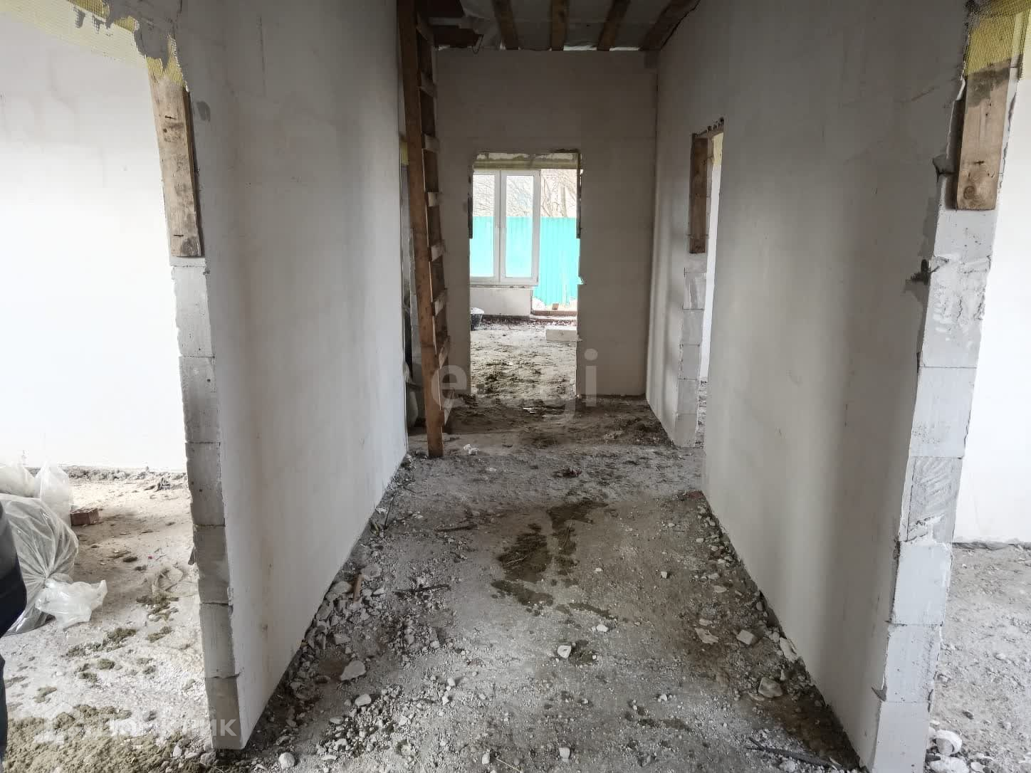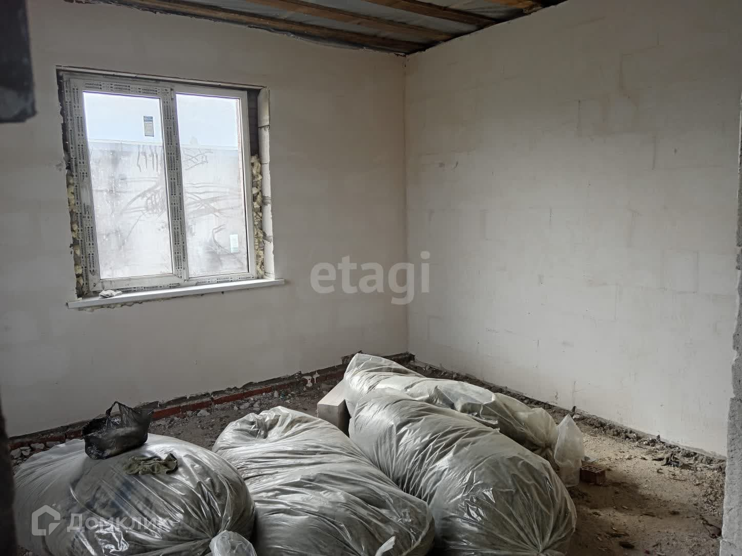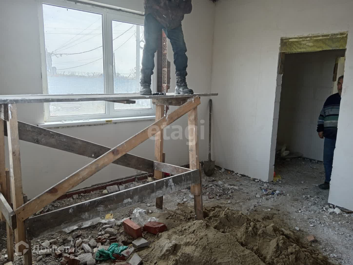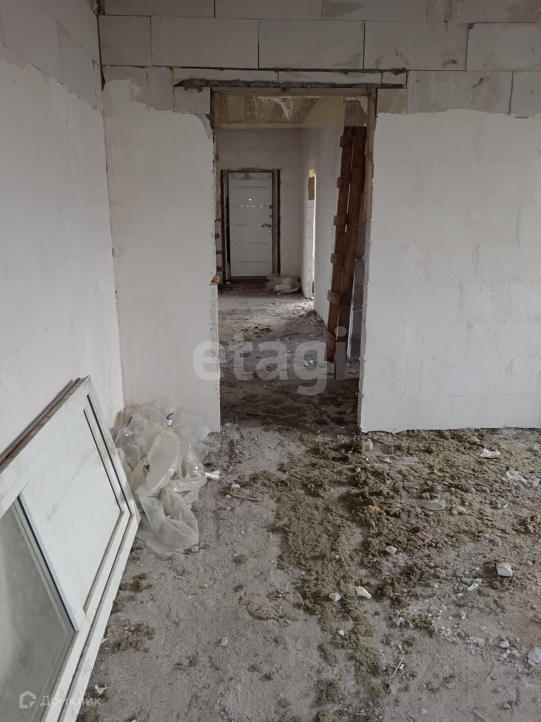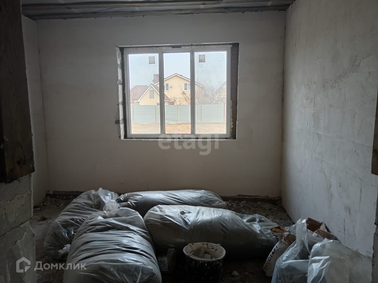 По стенам выполнена штукатурка, на полу стяжка отсутствует.