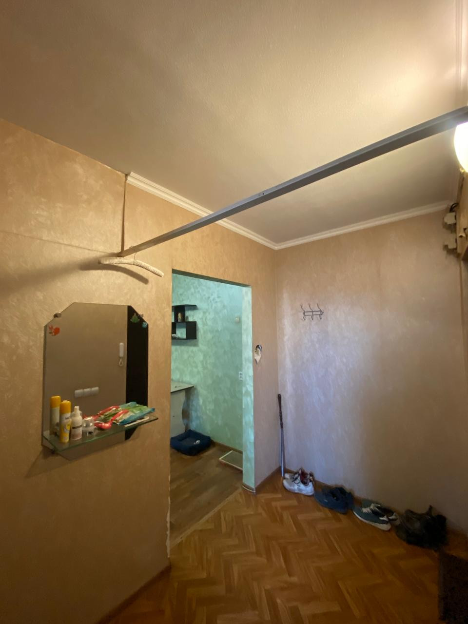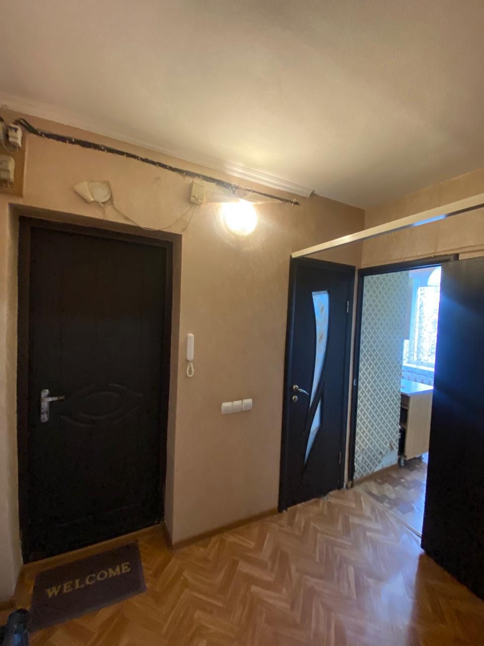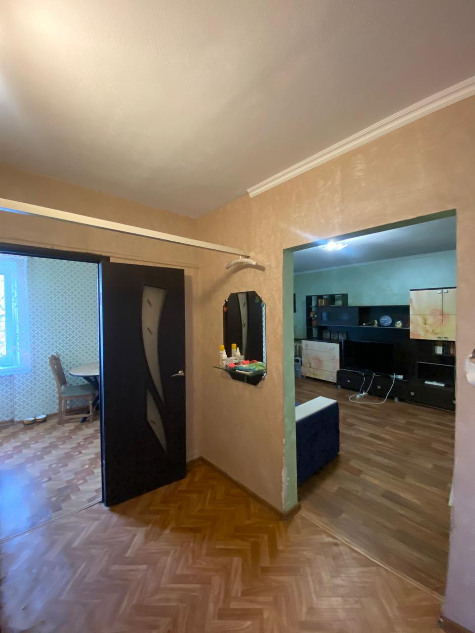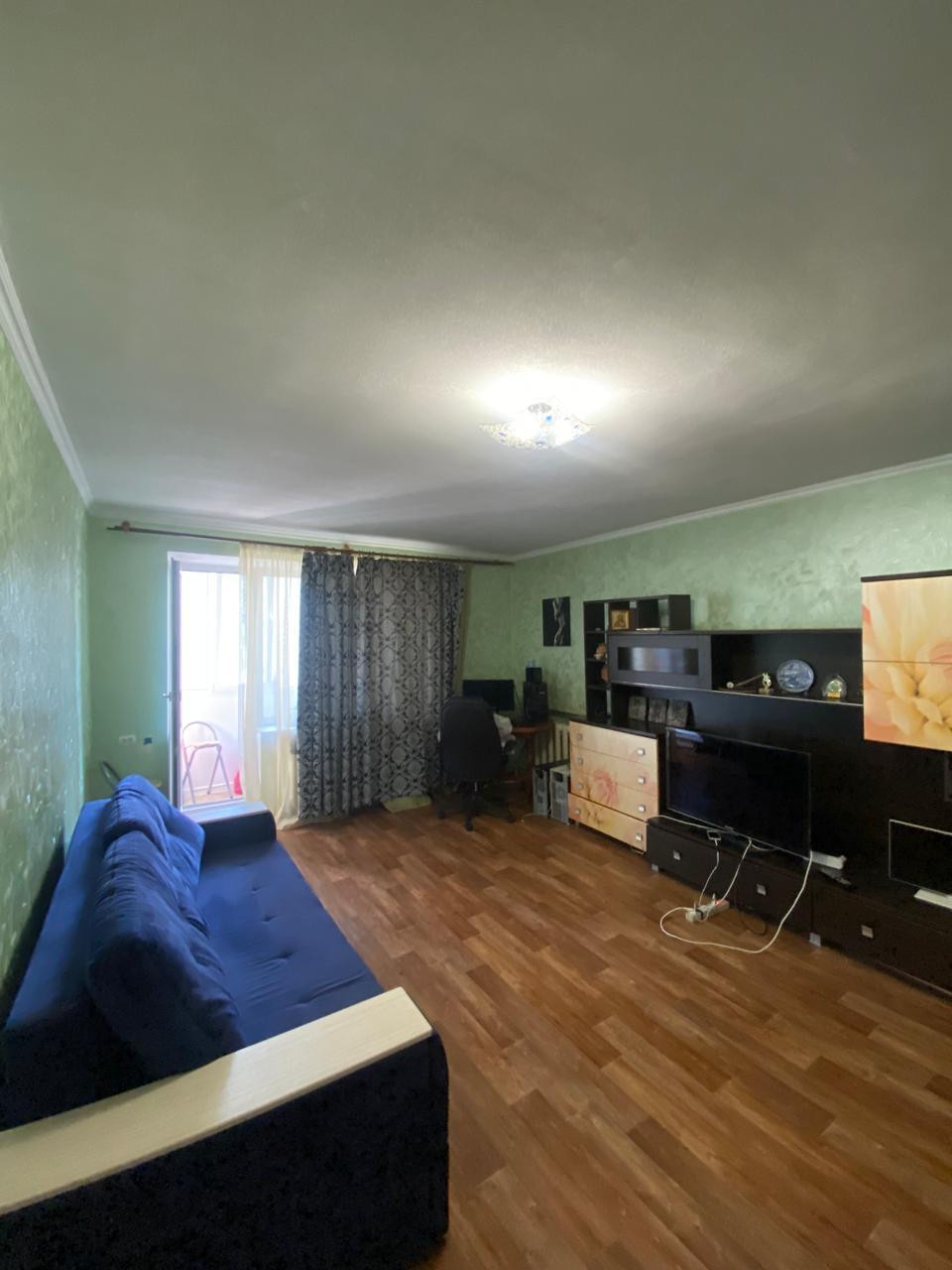 Состояние заходи и живи. Кухня и стенка в зале остаются. Балкон застеклен пластиком.