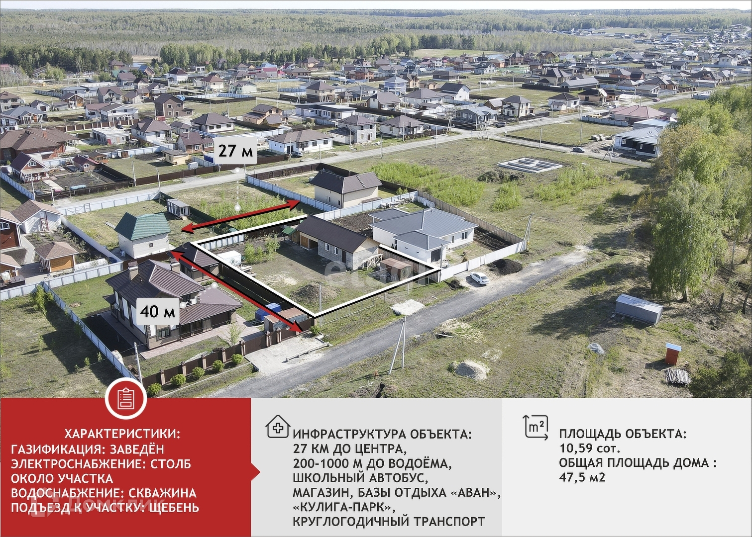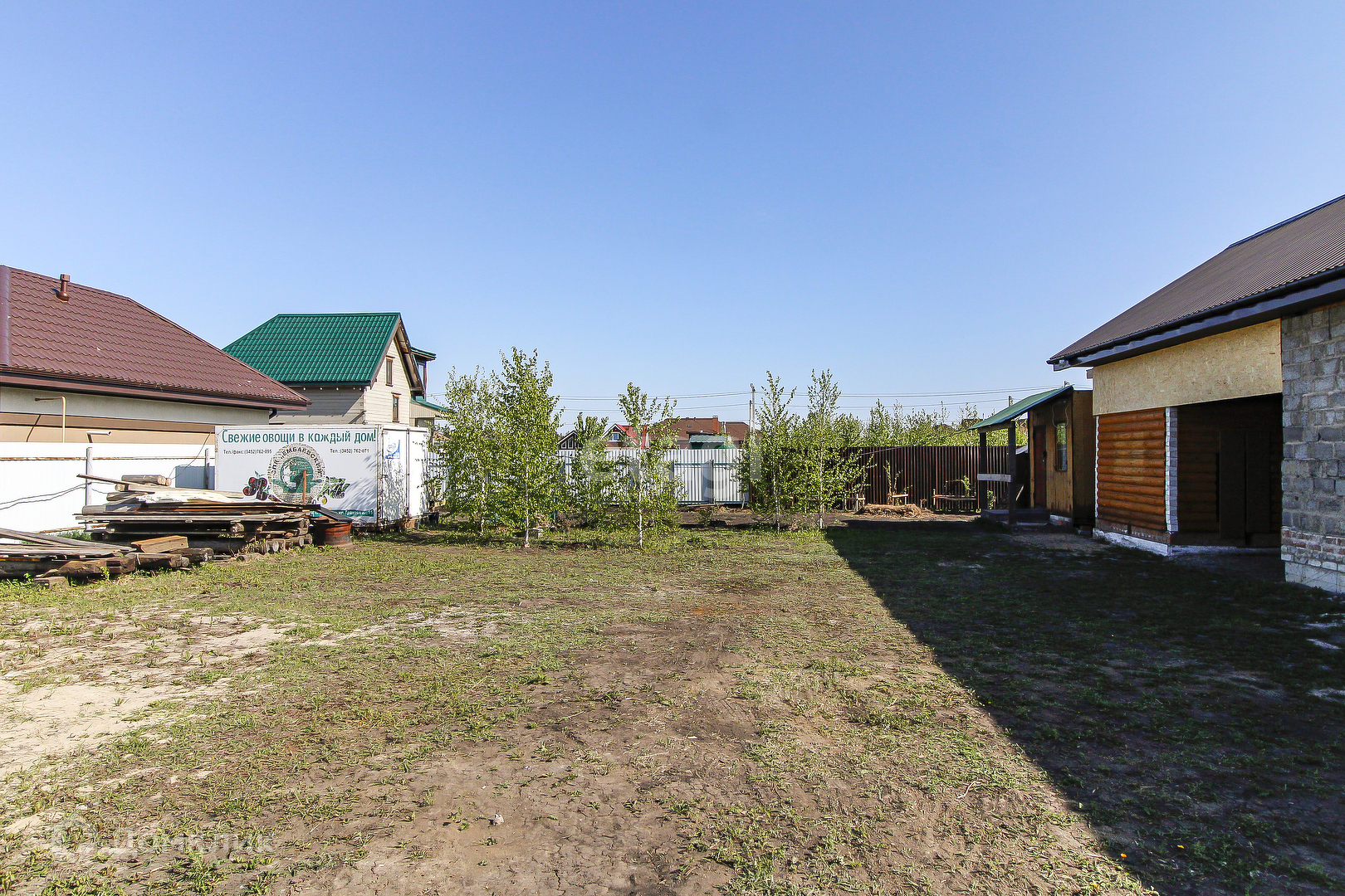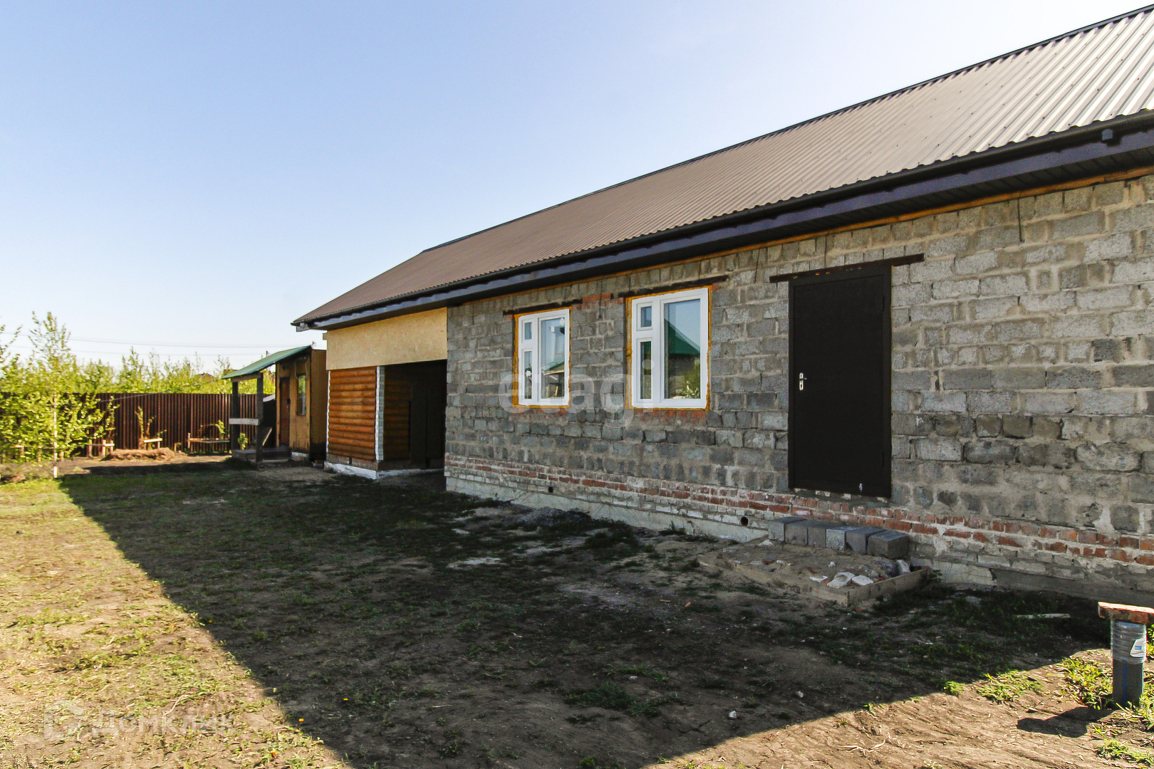 Участок правильной формы, 11 сот. Огорожен, кроме входной группы. Электричество подключено, с соблюдением технических условий. Пробурена скважина 56м, вода хорошая. Газовый стояк. На участке имеется дом в черновом варианте 47,5кв.м, пол - плиты перерытия, с подпольем 4×4, высотой 2,20. Баня из оцилиндрованного бревна в черновом варианте 6×3, с септиком, пол в бане подготовлен для кладки плитки, предбанник - выложен деревянный пол. Имеется бытовка, 6×3, утеплена. Насаждения- яблони, груша, алыча, вишня, смородина (черная, красная, белая), малина, клубника, жимолость. Цветы-многолетники.