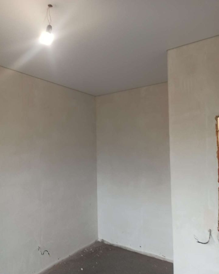 Электрика заведена, стены оштукатурены, залита ровная стяжка. Септик и скважина готовы.