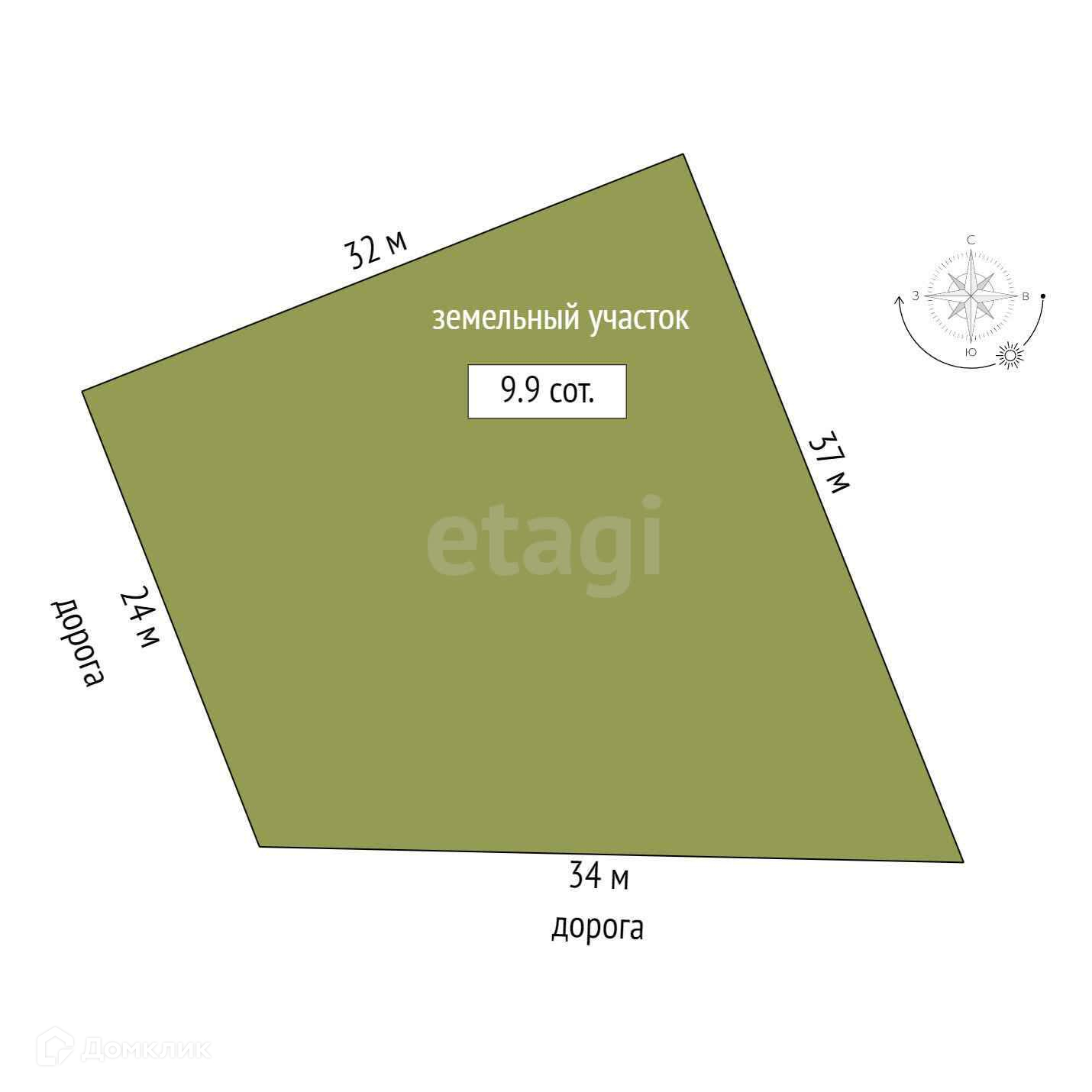 Площадь участка 9.9 сот.