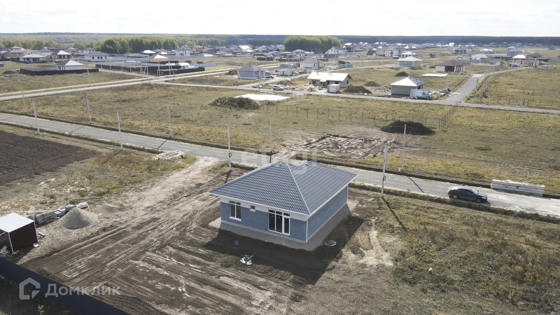 На участке расположился одноэтажный дом 93м2. Большая кухня гостиная 23,5м2 и 3 большие спальни.