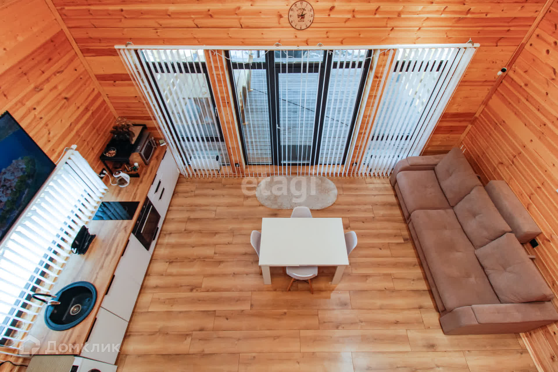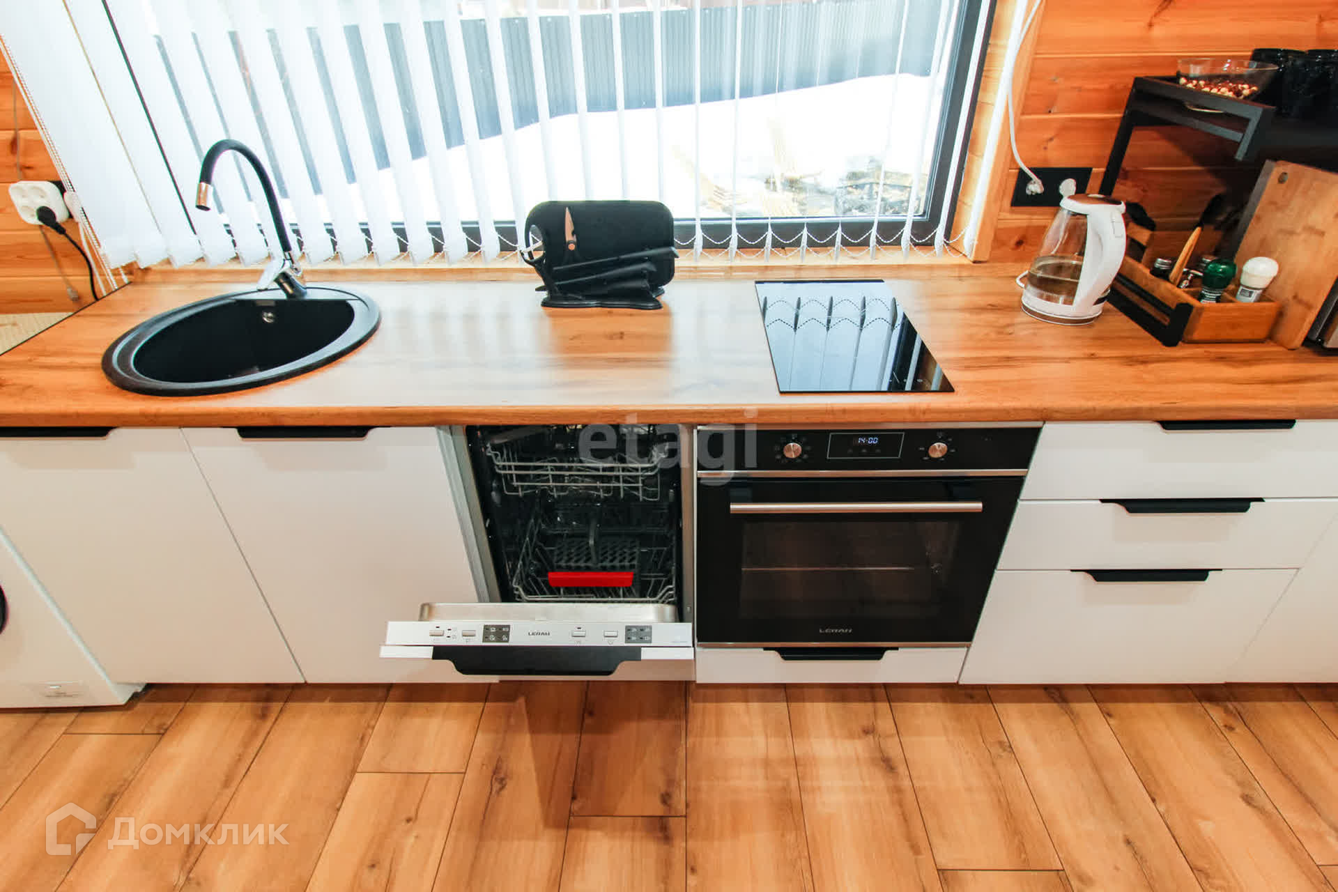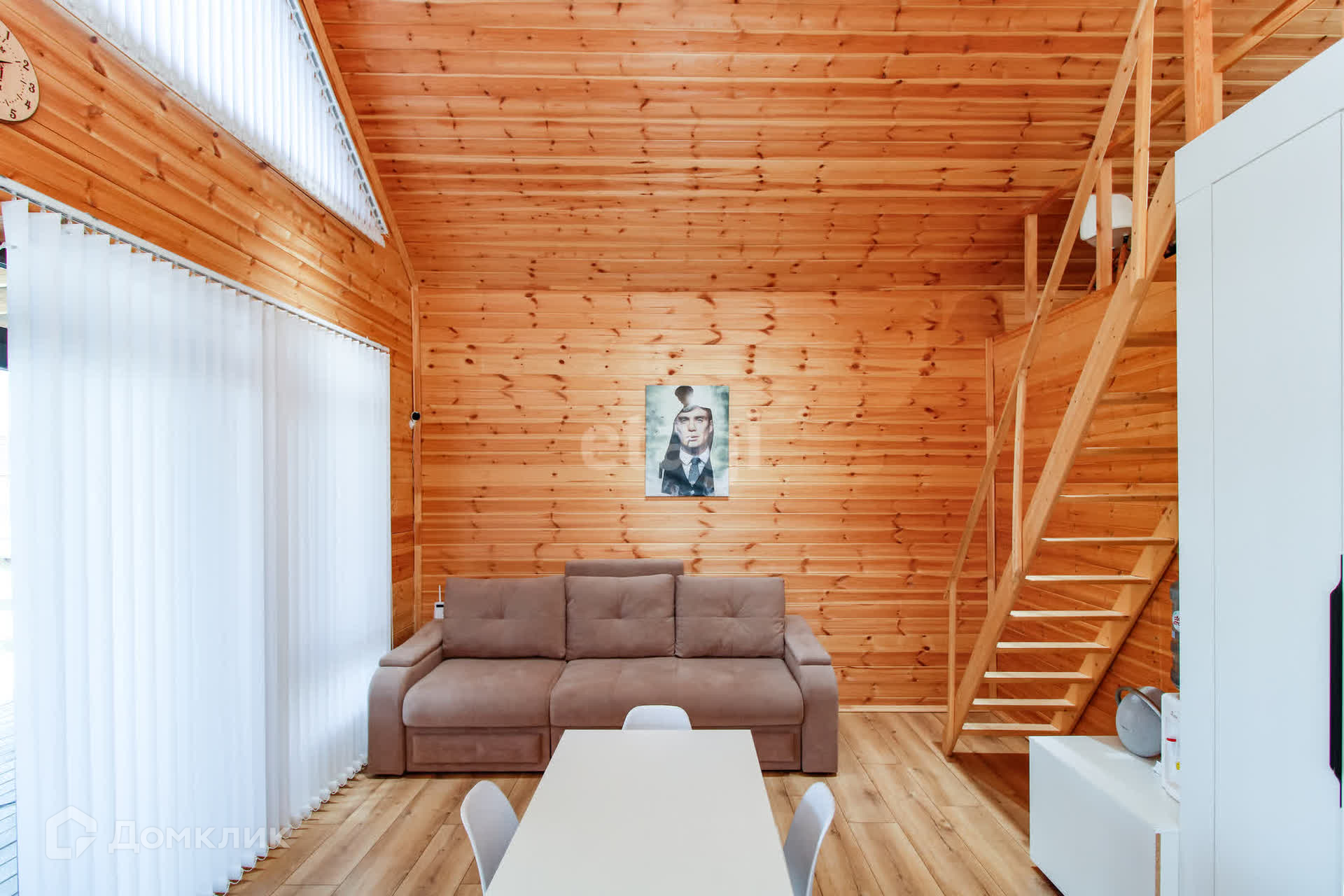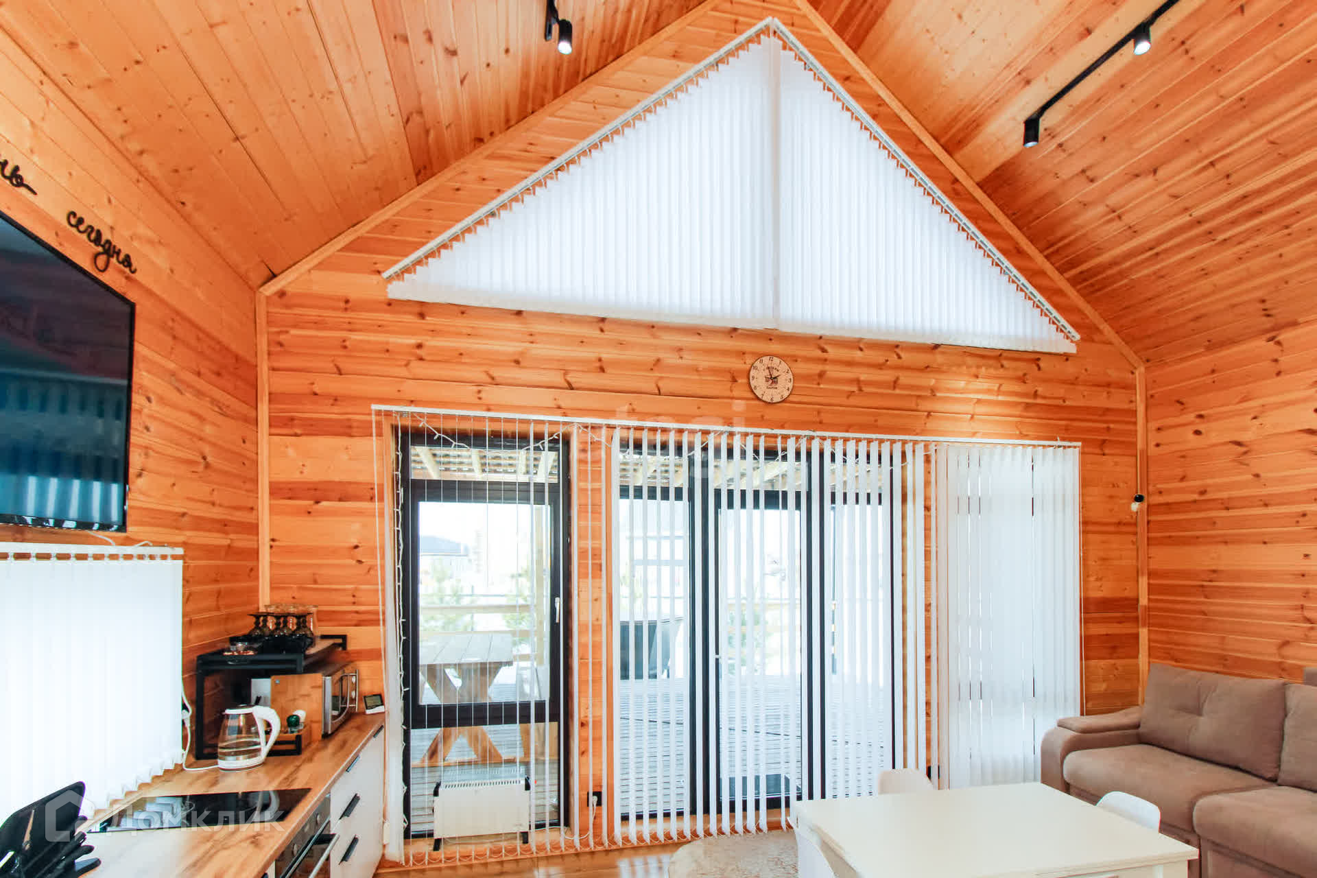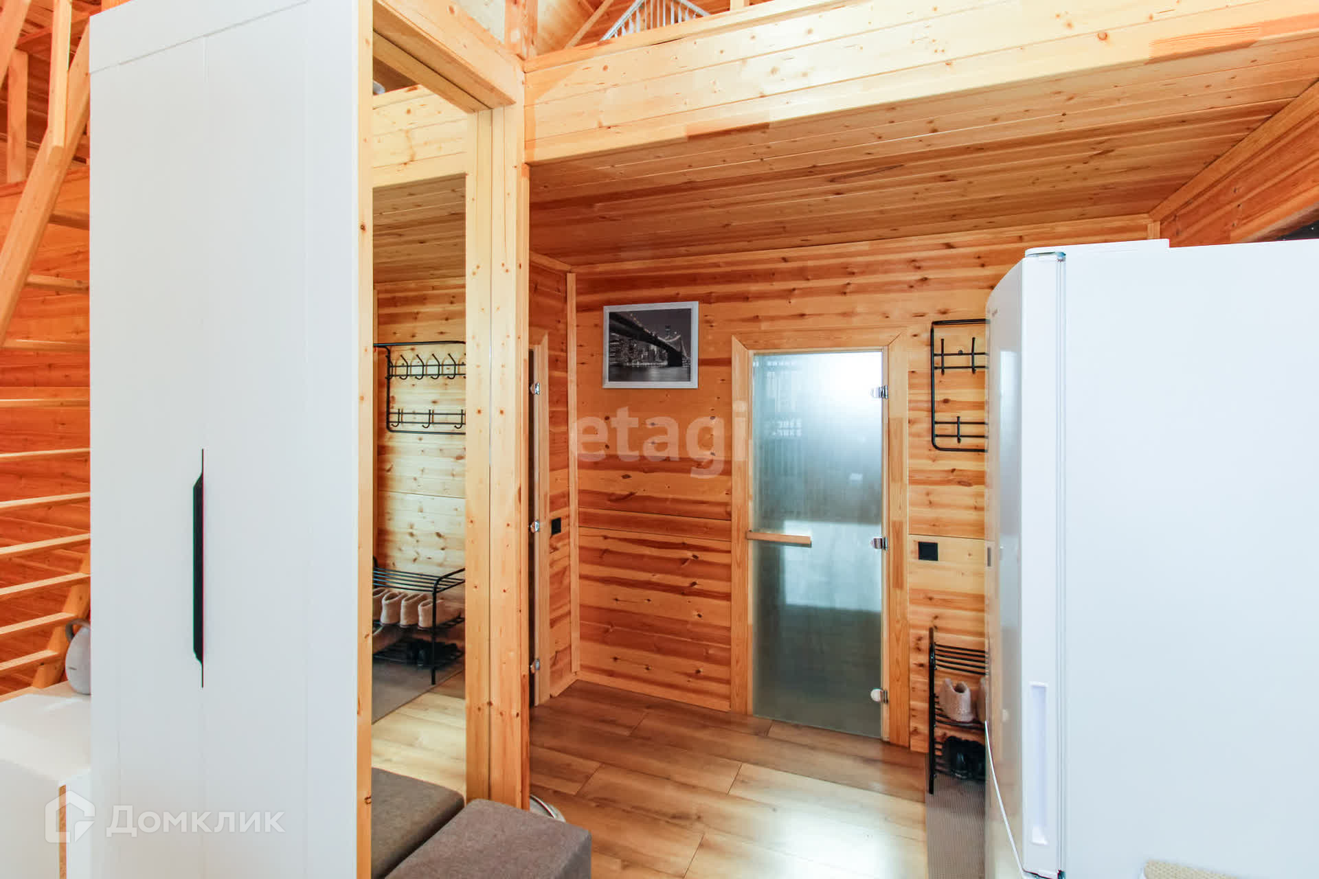 Дом - 1 ЭТАЖ - финская сауна, раздевалка, душ, туалет, кухня-гостиная с посудой, 2-спальный диван, раздвижной стол, стулья, холодильник с морозильной камерой, стиральная и посудомоечная машины, духовой шкаф и варочная панель, микроволновая печь, чайник, кулер с водой, WI-FI, смартТВ