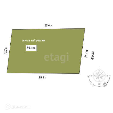 Площадь участка 9.8 сот.