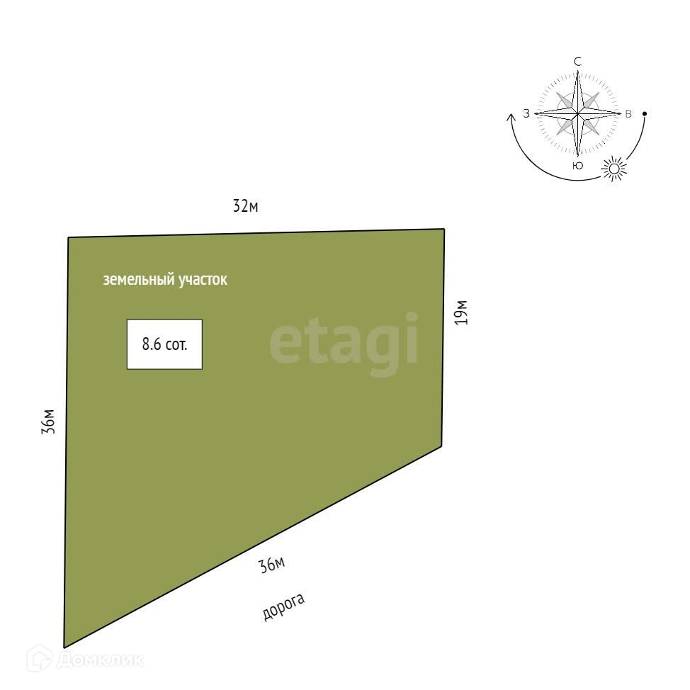 Площадь участка 8.6 сот.