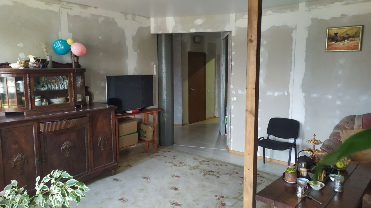 Вторая квартира свободной планировки с черновым ремонтом, с автономным водяным печным отоплением,  с собственной водяной скважиной с насосом в доме, с канализацией.
