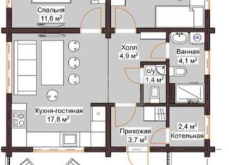 Общая площадь: 23.4 м2