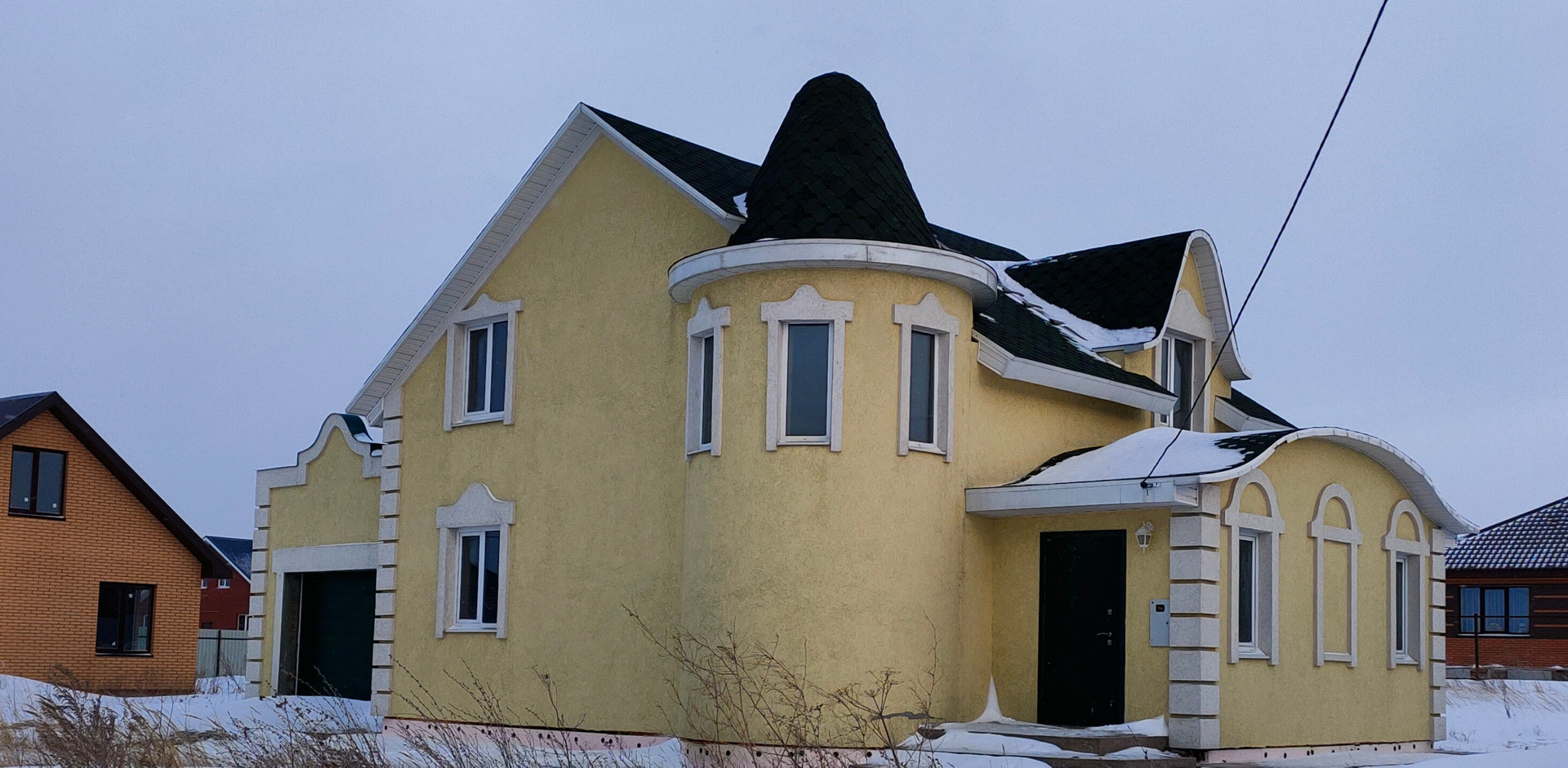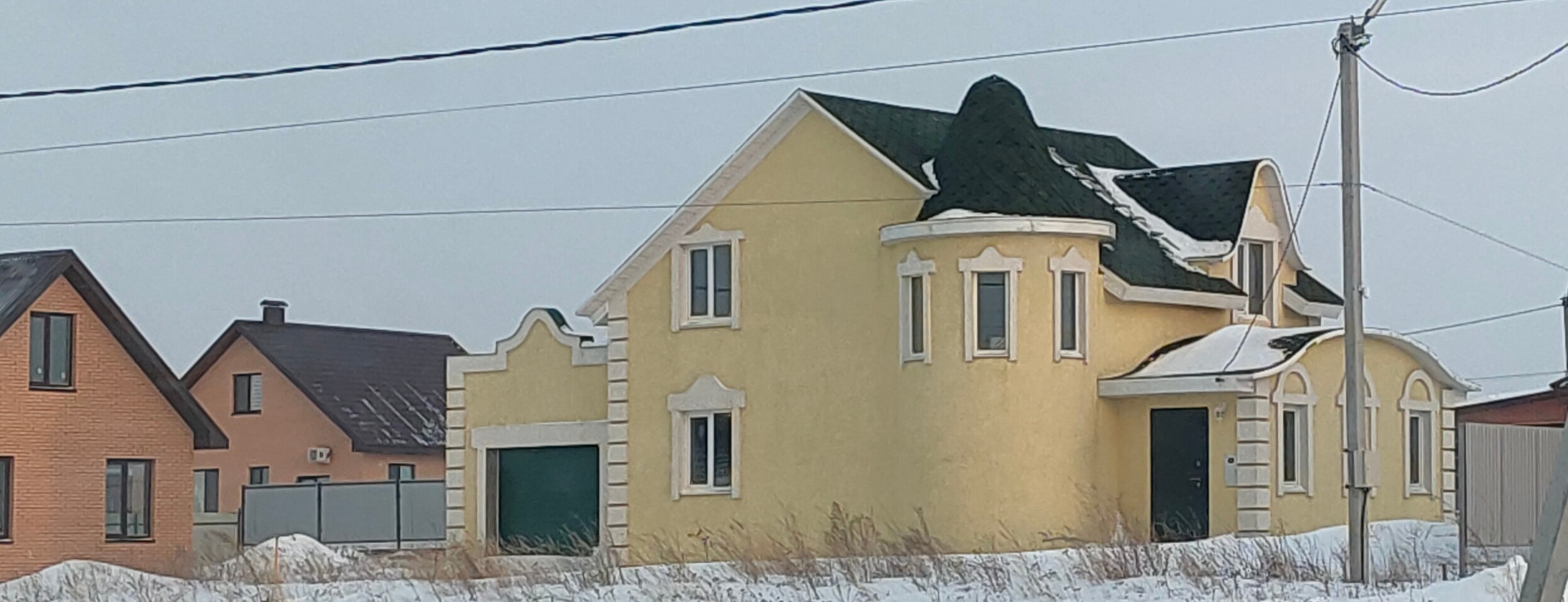 С наружи утеплен и обработан декоративной краской. Толщина стен жилого дома составляет 51 см.