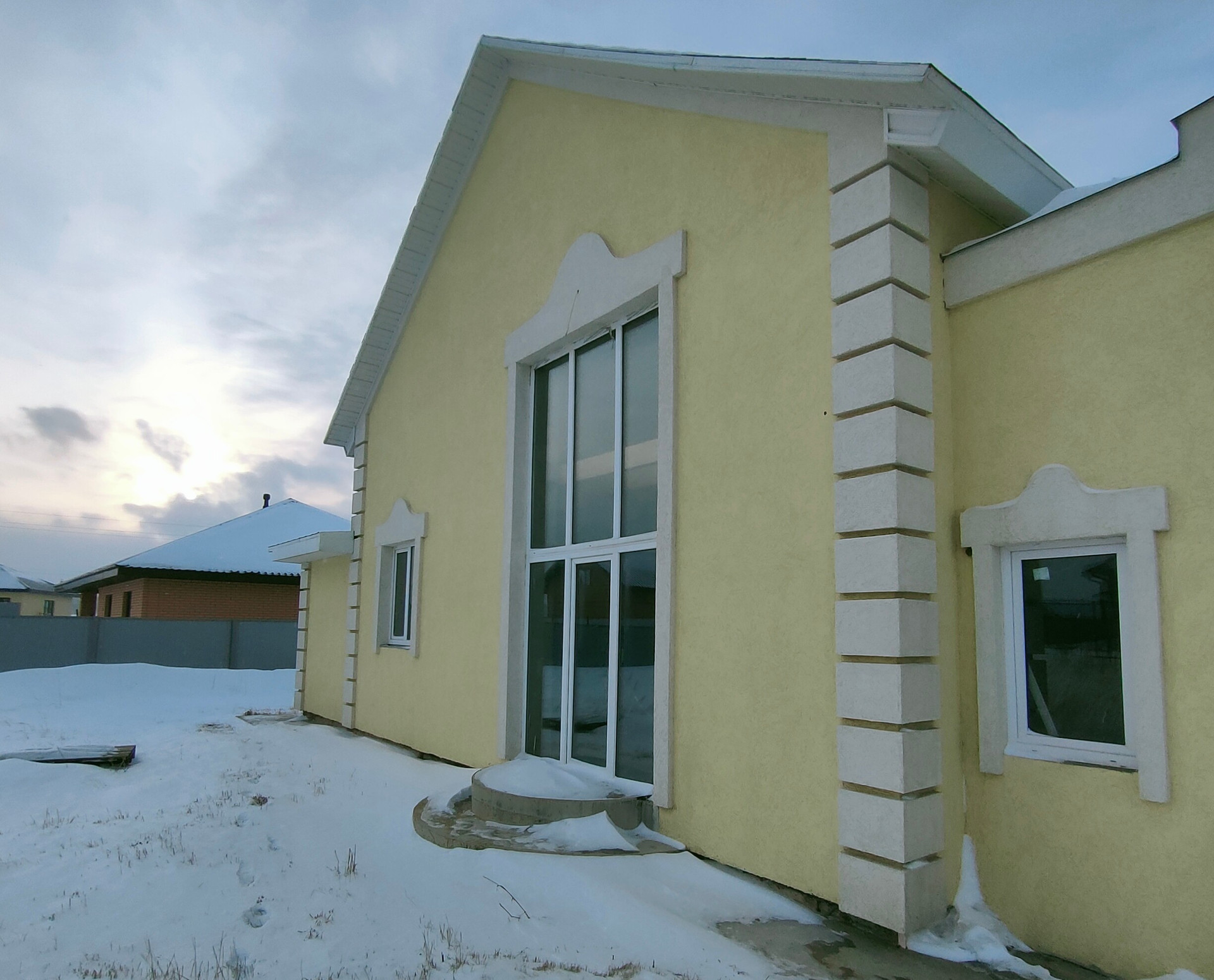Удобная планировка, три спальни, санузел, кухня с гостиной, с выходом на задний двор. Высота потолков 3 метра. Панорамные окна. К дому заведено; свет, газ, канализация, вода.