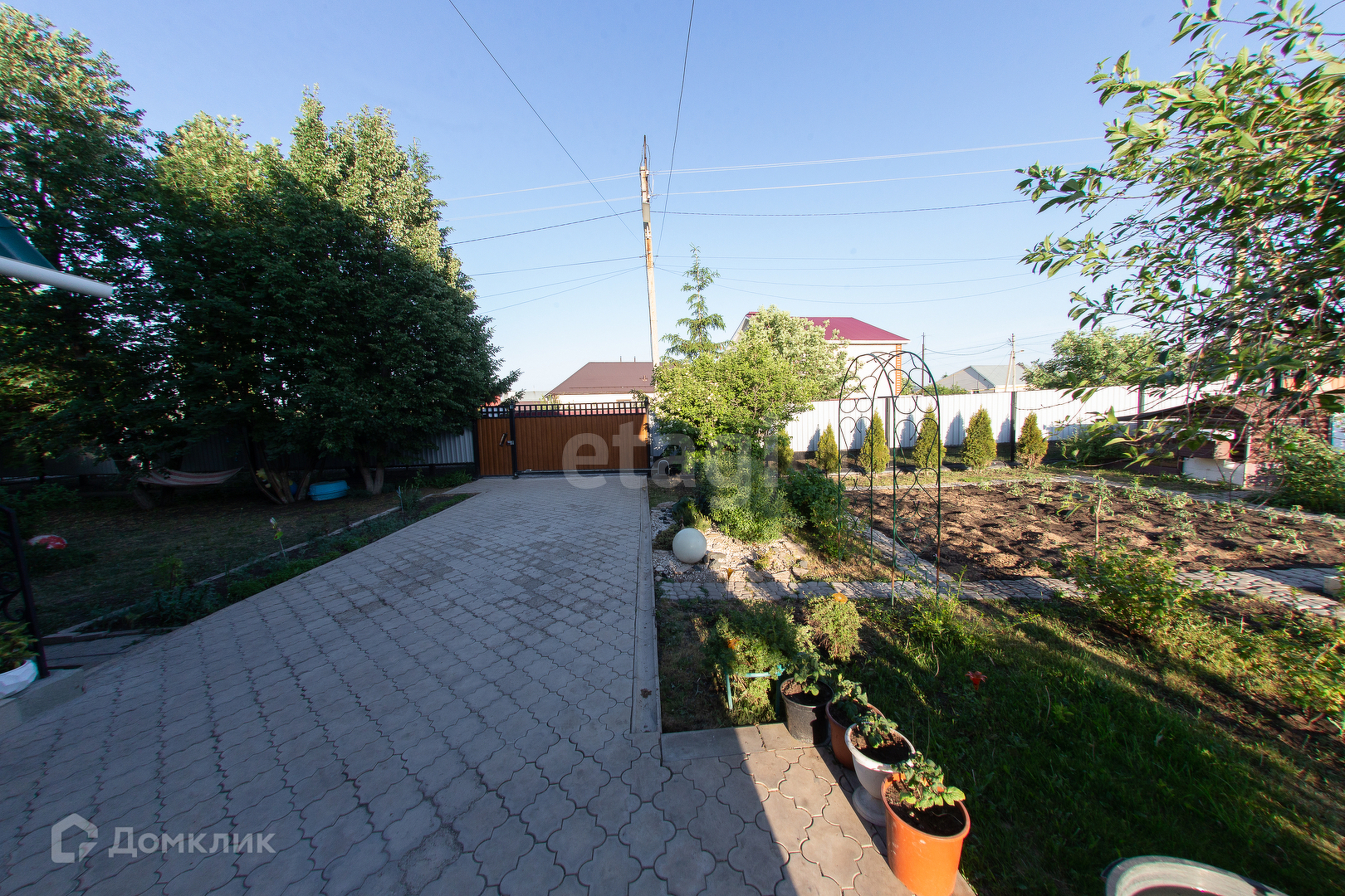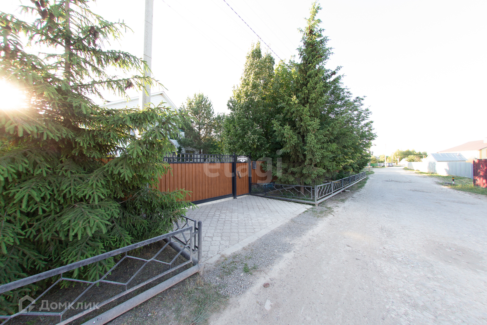 На участок имеется 2 заезда с автоматическими воротами, перед домом огороженный сад с деревьями.