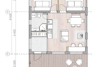 Самый компактный домик из серии проектов «Термак». Его площадь составляет 55 м2, данный вариант идеально подойдет в качестве гостевого дома для размещения гостей или же для коммерческой деятельности. В доме заложены две изолированные спальни, санузел и общая кухня-гостиная. Прекрасное место, куда можно уехать от городской суеты, чтобы послушать тишин... |