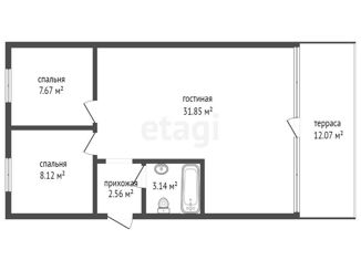 Общая площадь: 52.4 м2