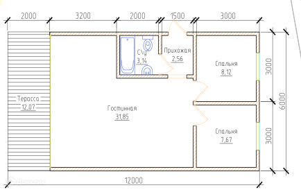 Цена базовой комплектации 6*12 с террасой - 3 000 000 рублей