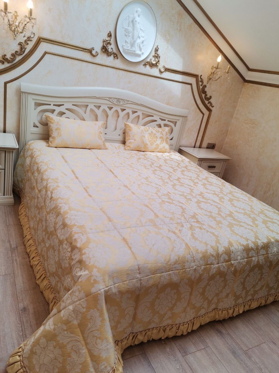 2-этаж- 3 просторные спальни с мебелью, гардеробная, санузел. Два  балкона.