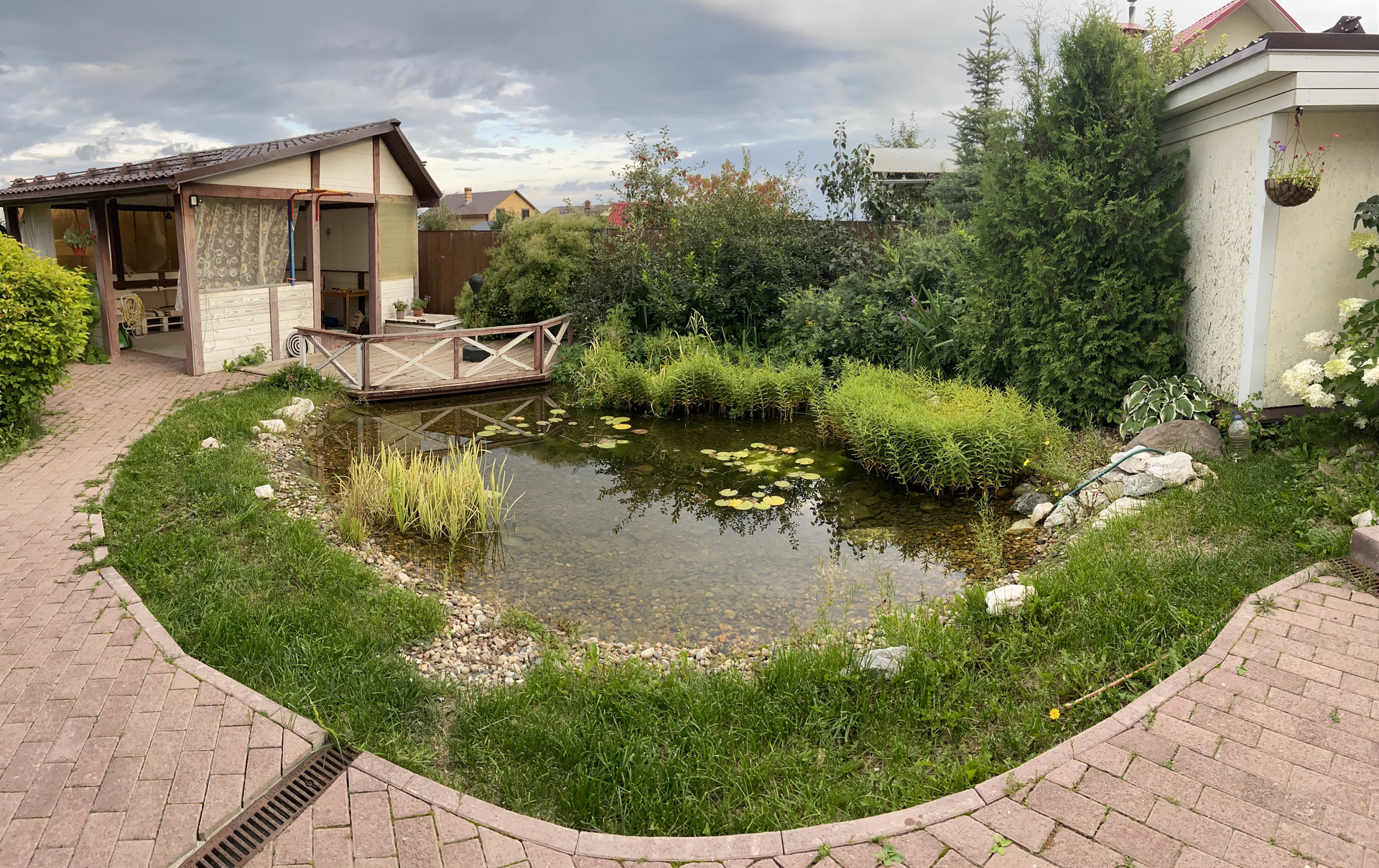 Есть где отдохнуть на свежем воздухе – веранда. Декоративный пруд с нимфеями.