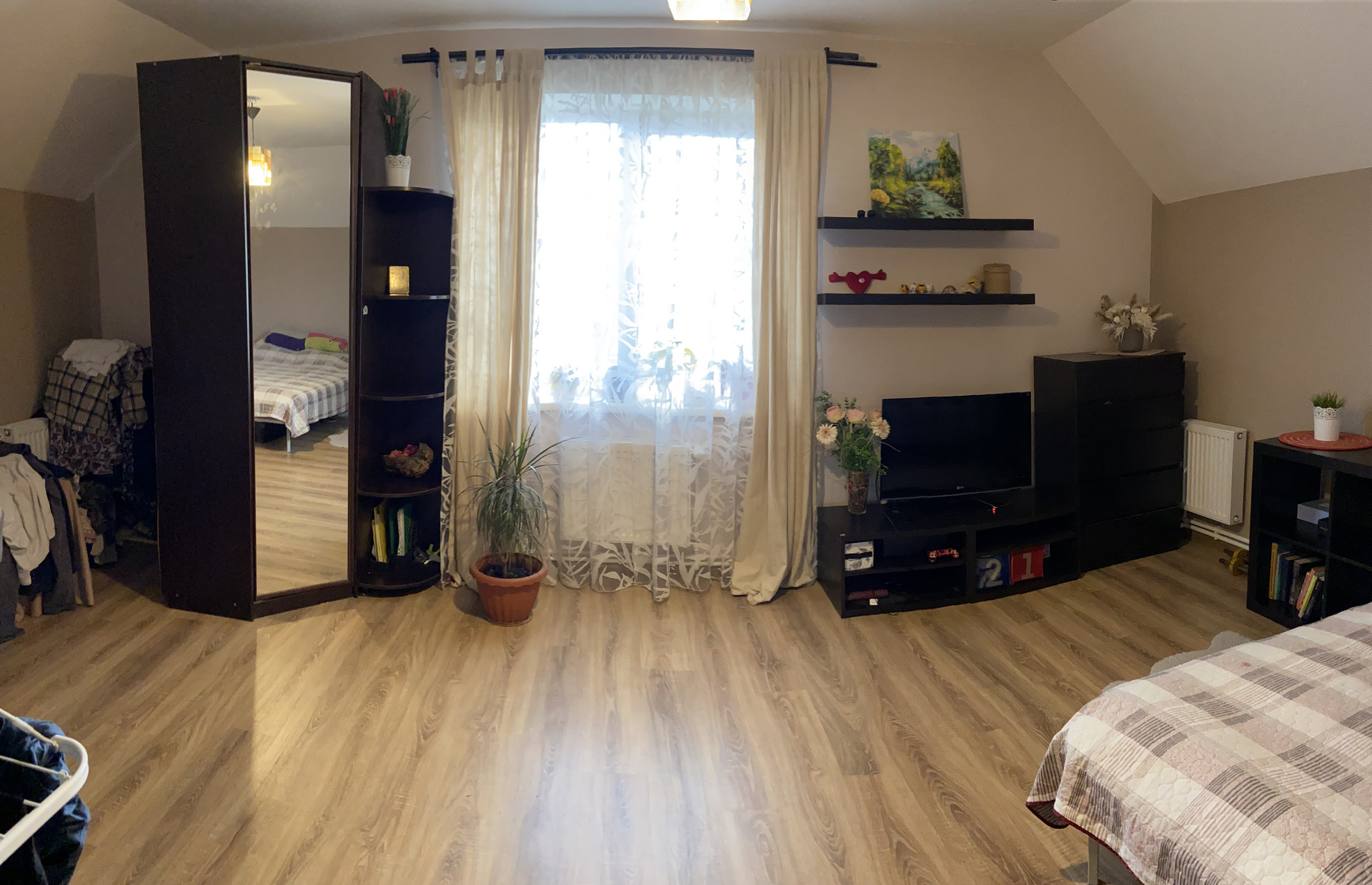 На втором этаже 3 спальни и санузел, гардеробная.