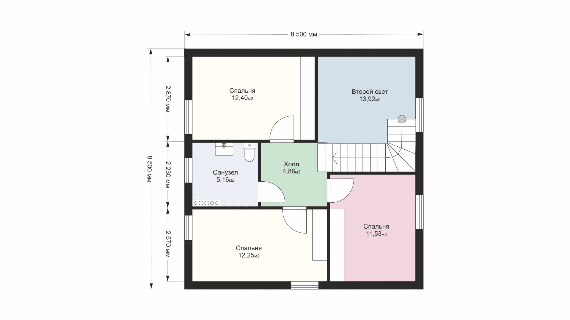 Холл: Просторный, с лестницей на второй этаж.