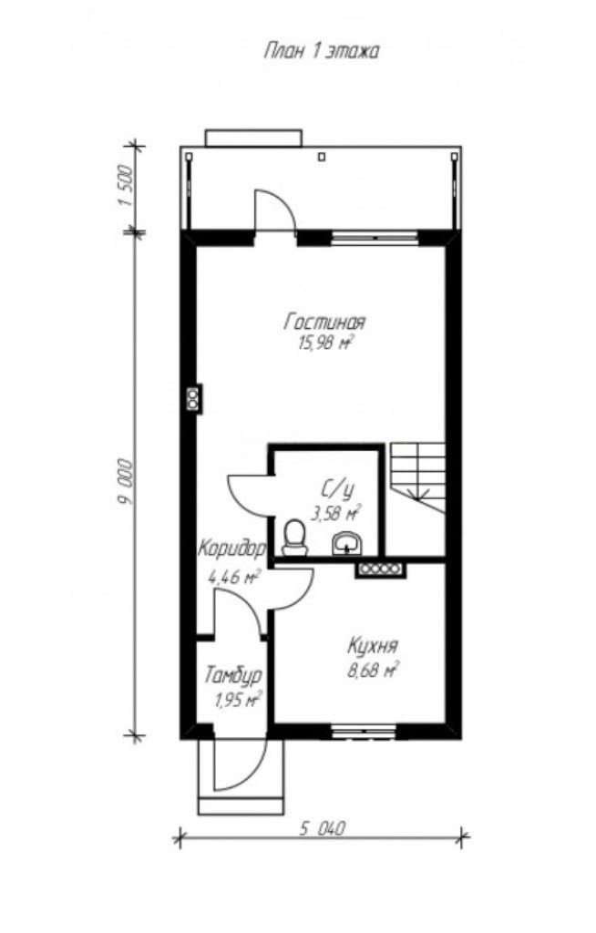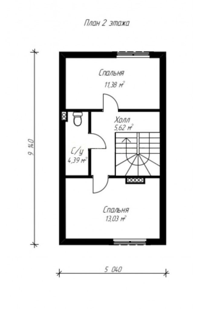 Размеры дома: 9.14 x 5.04 м