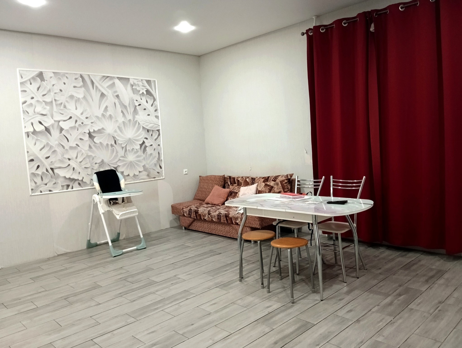 Кухня-гостиная, три изолированные комнаты, большая мастерская.