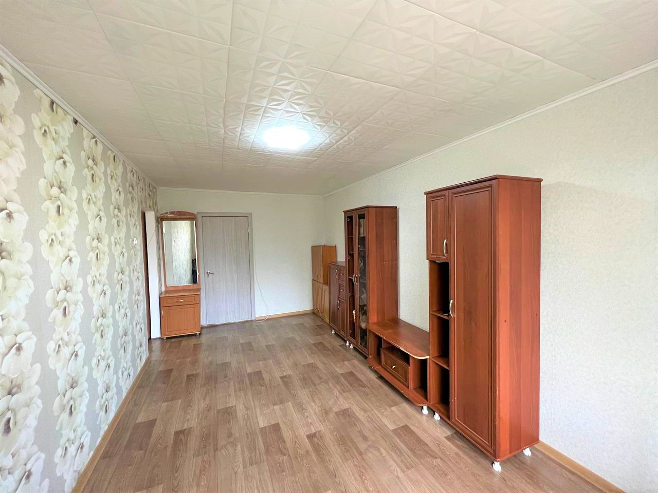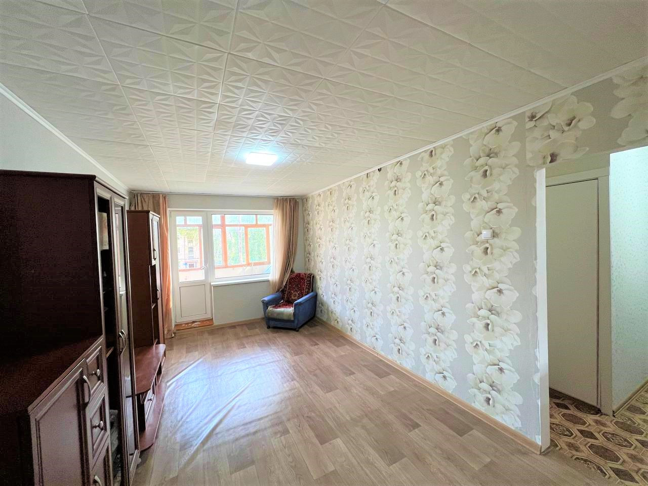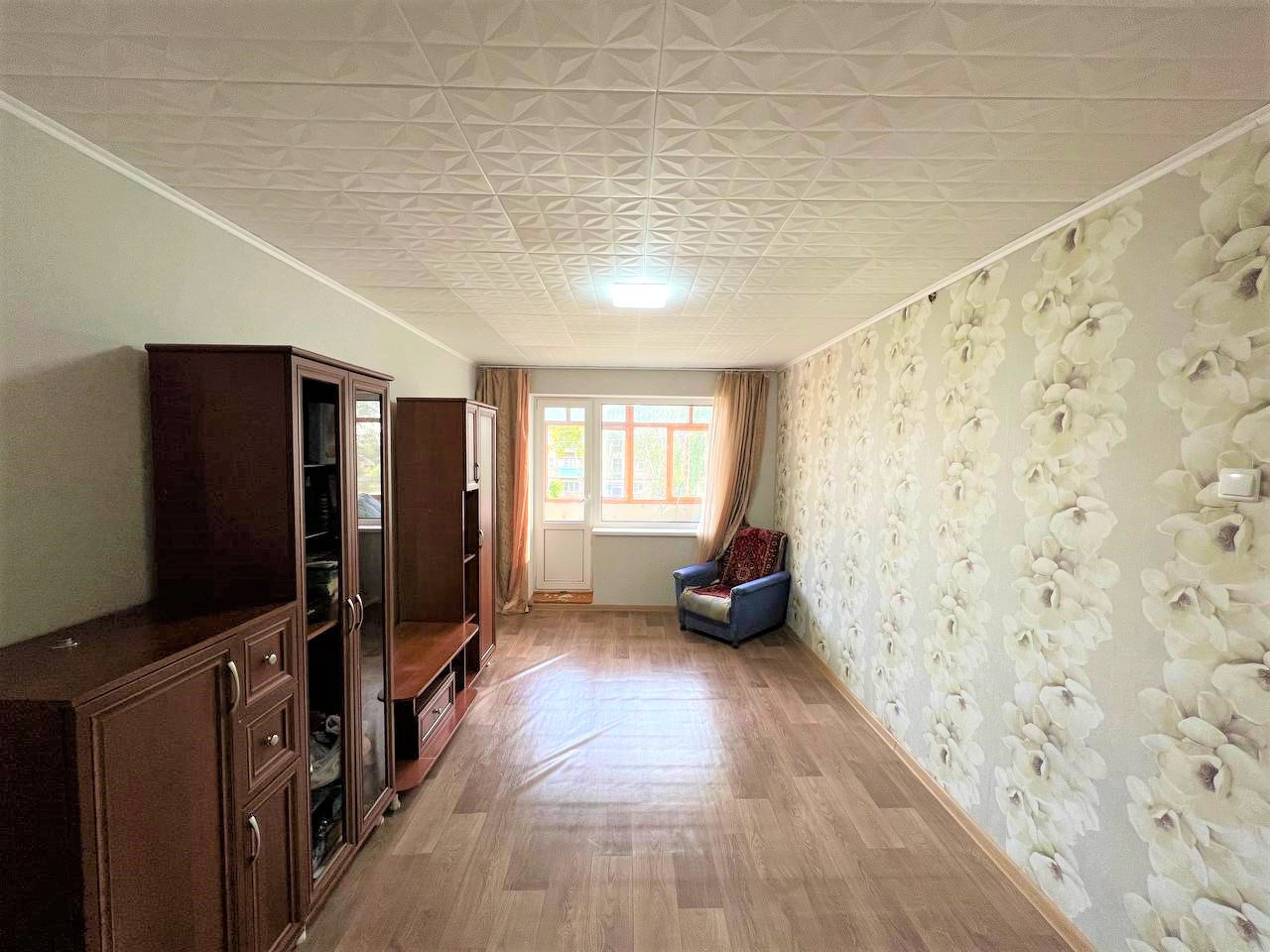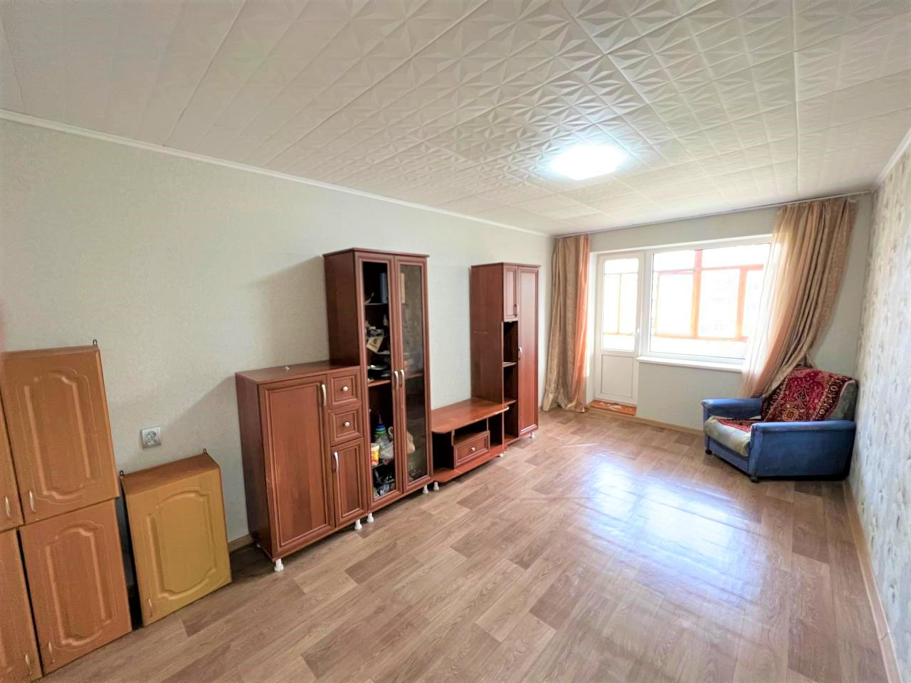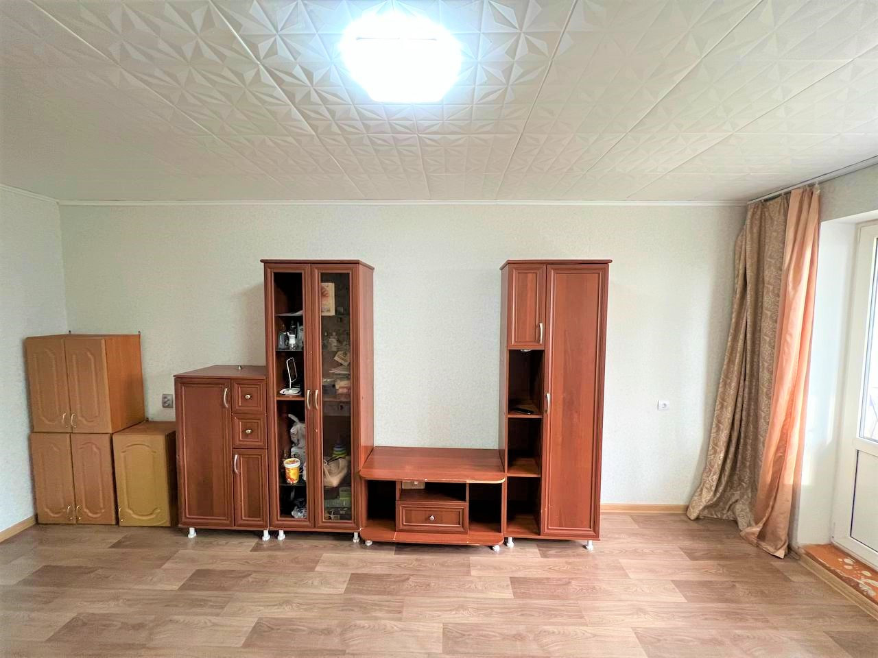 - В гостиной отличный ремонт, который делали для себя, на потолке новая плитка, а на полу новый линолеум;