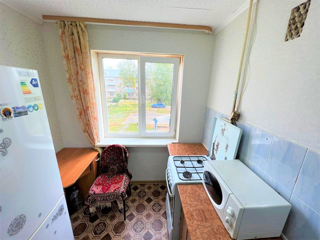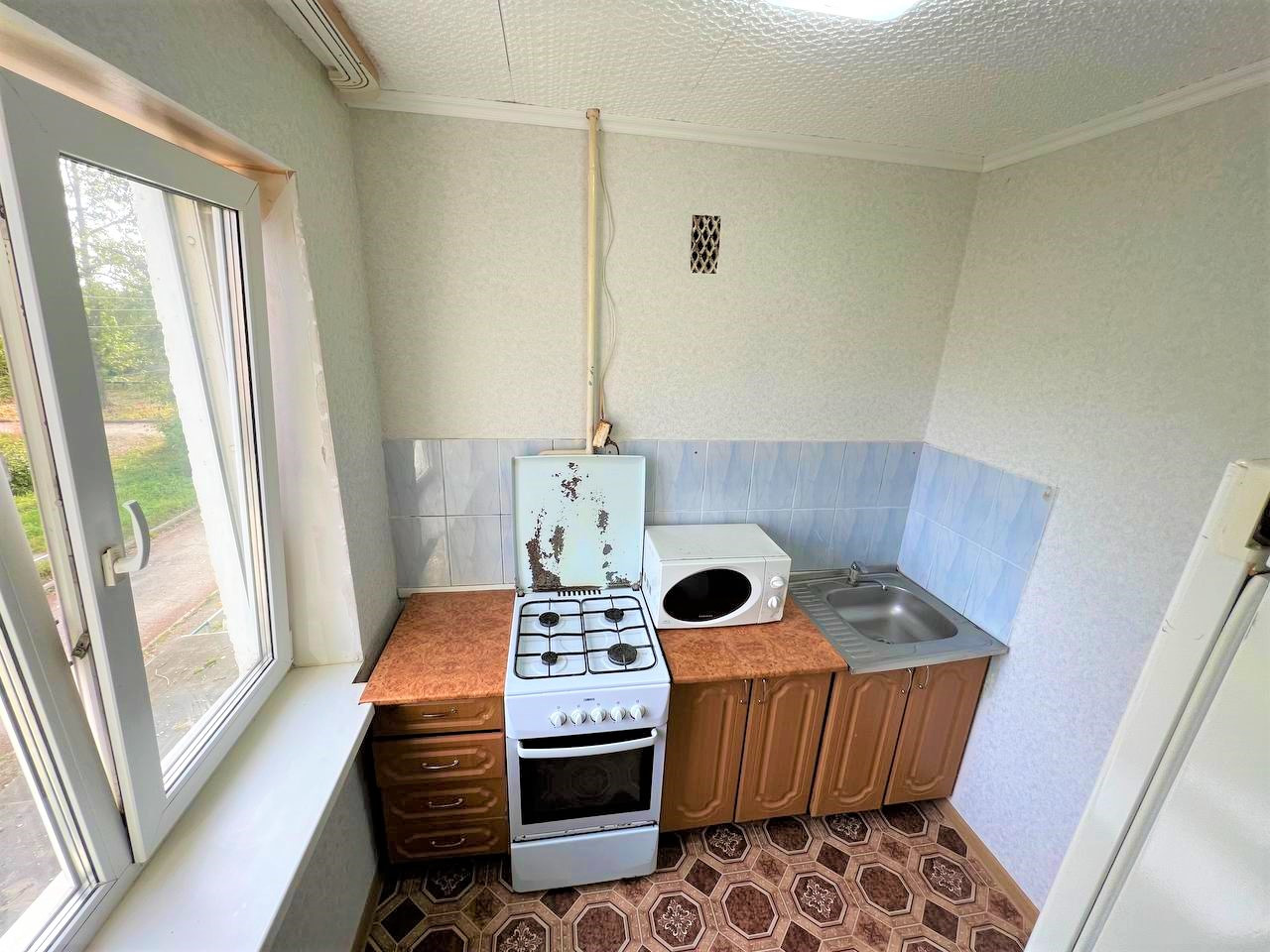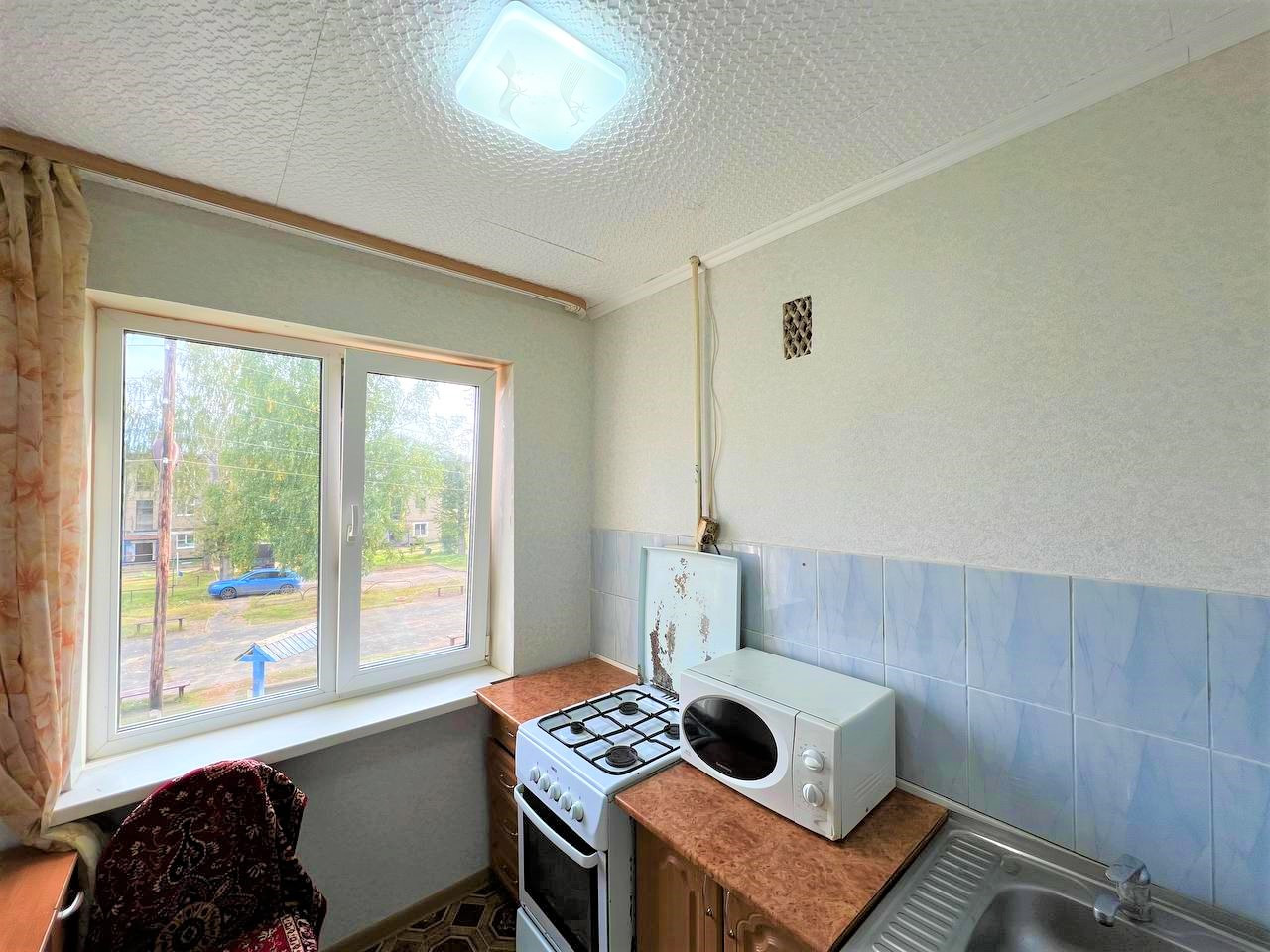 - Раздельный санузел, кухня отдельно от гостиной, что дает возможность готовить, не отвлекаясь, также на кухне поклеили плитку, обои и постелили новый линолеум;