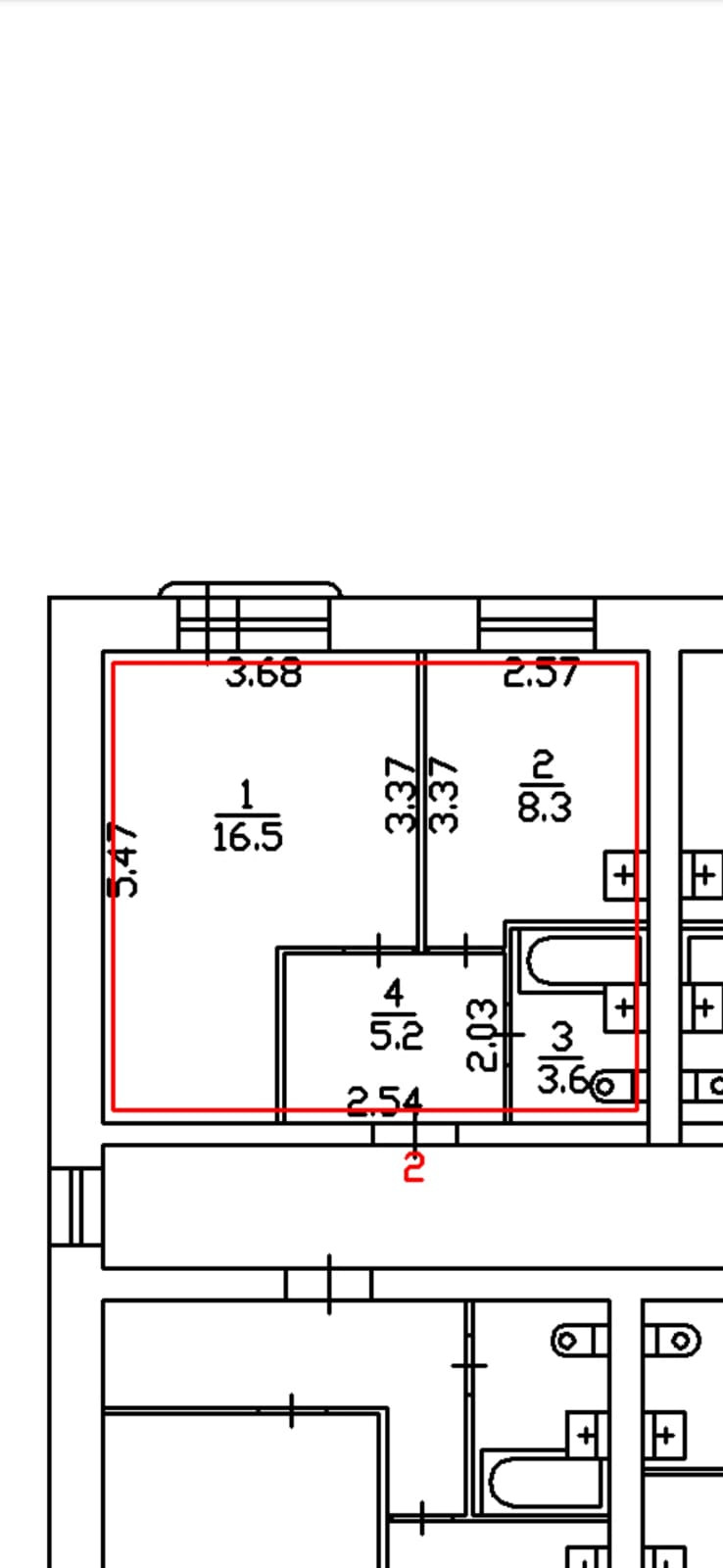 Жилая площадь 16.5 м2
