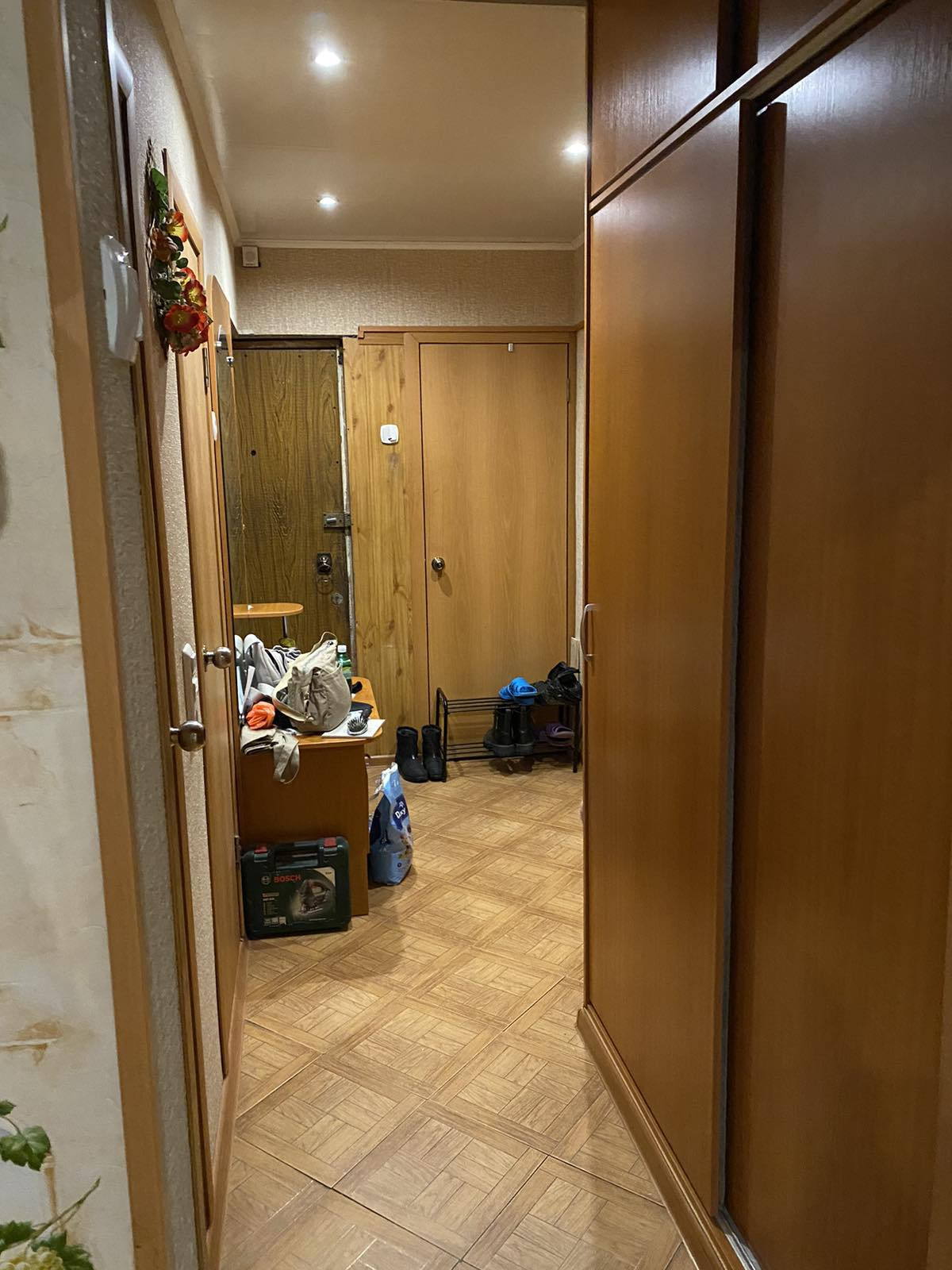 Состояние квартиры хорошее и не требует больших вложений. Обе комнаты изолированные, санузел раздельный, просторный коридор и кухня. Есть две кладовки: одна в коридоре и вторая на кухне (очень удобно для хранения консервации-там прохладно). Также, в коридоре имеется ниша возле входной двери для раздевалки.