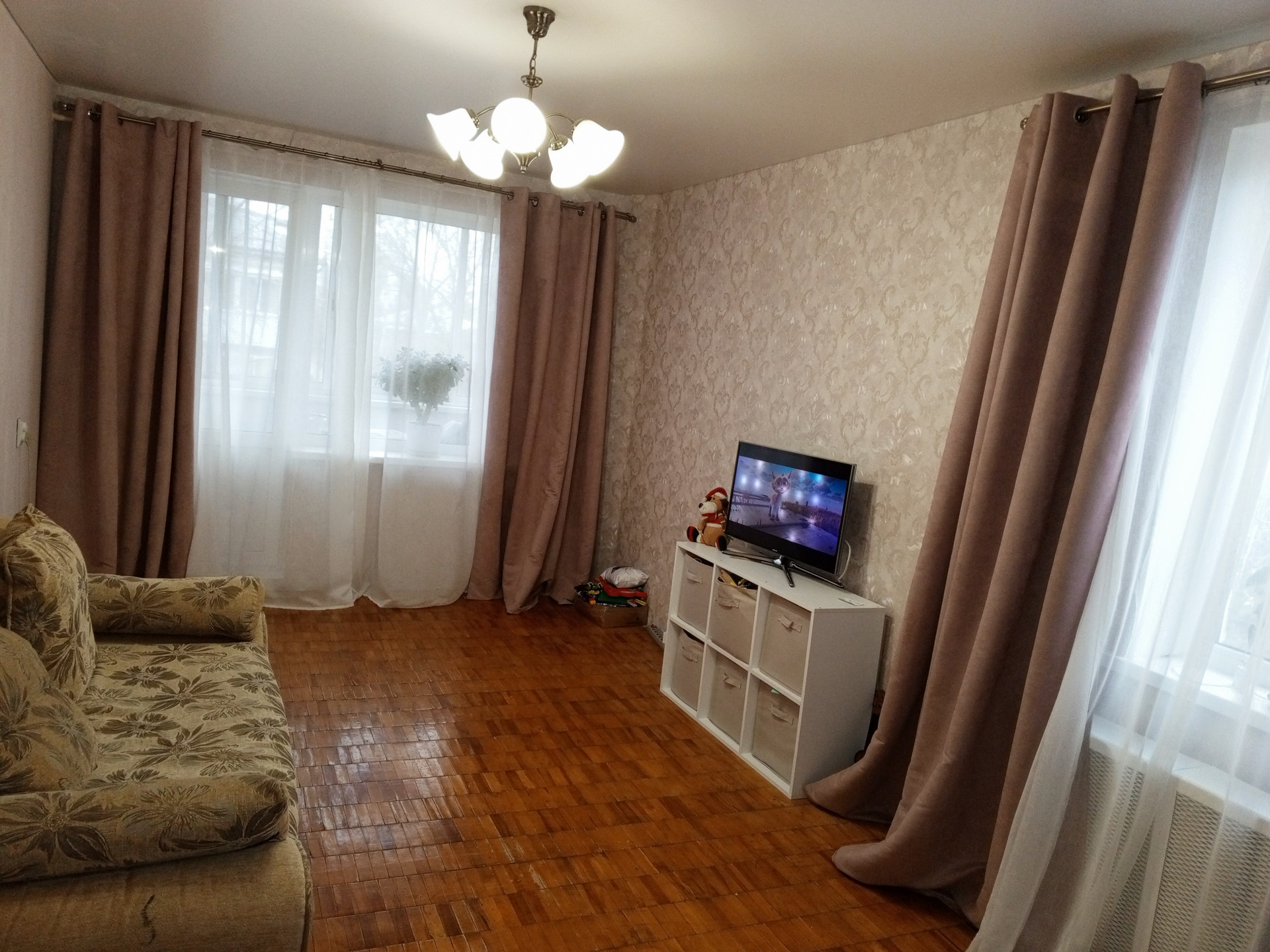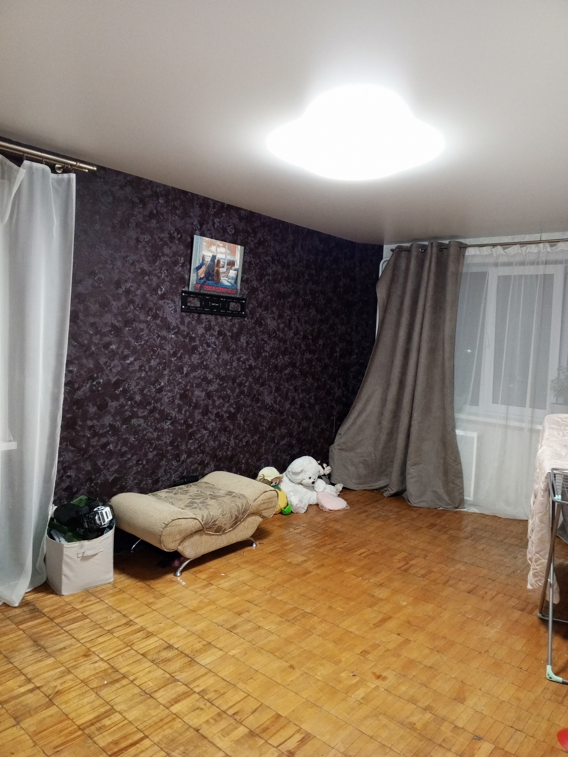 Изолированные комнаты две из которых 17.4 кв. м., окна стеклопакет, выходят на три стороны дома, по всей квартире натяжные потолки, раздельный санузел, просторная прихожая 7.8 кв. м. Балкон 0.9 кв. м. - застекленный, стеклопакет.