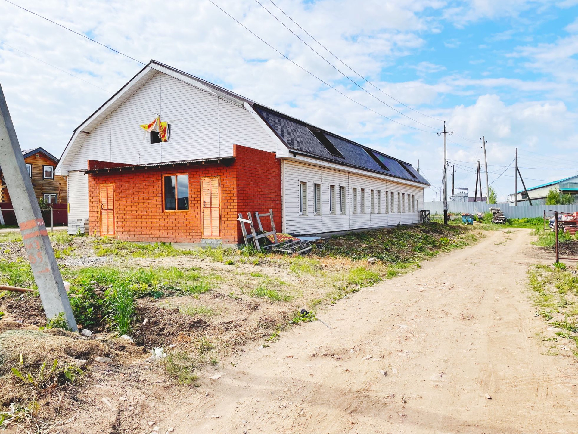 Двухэтажное здание с отоплением, водой, электричеством и канализацией. Газ проходит по границе участка!
