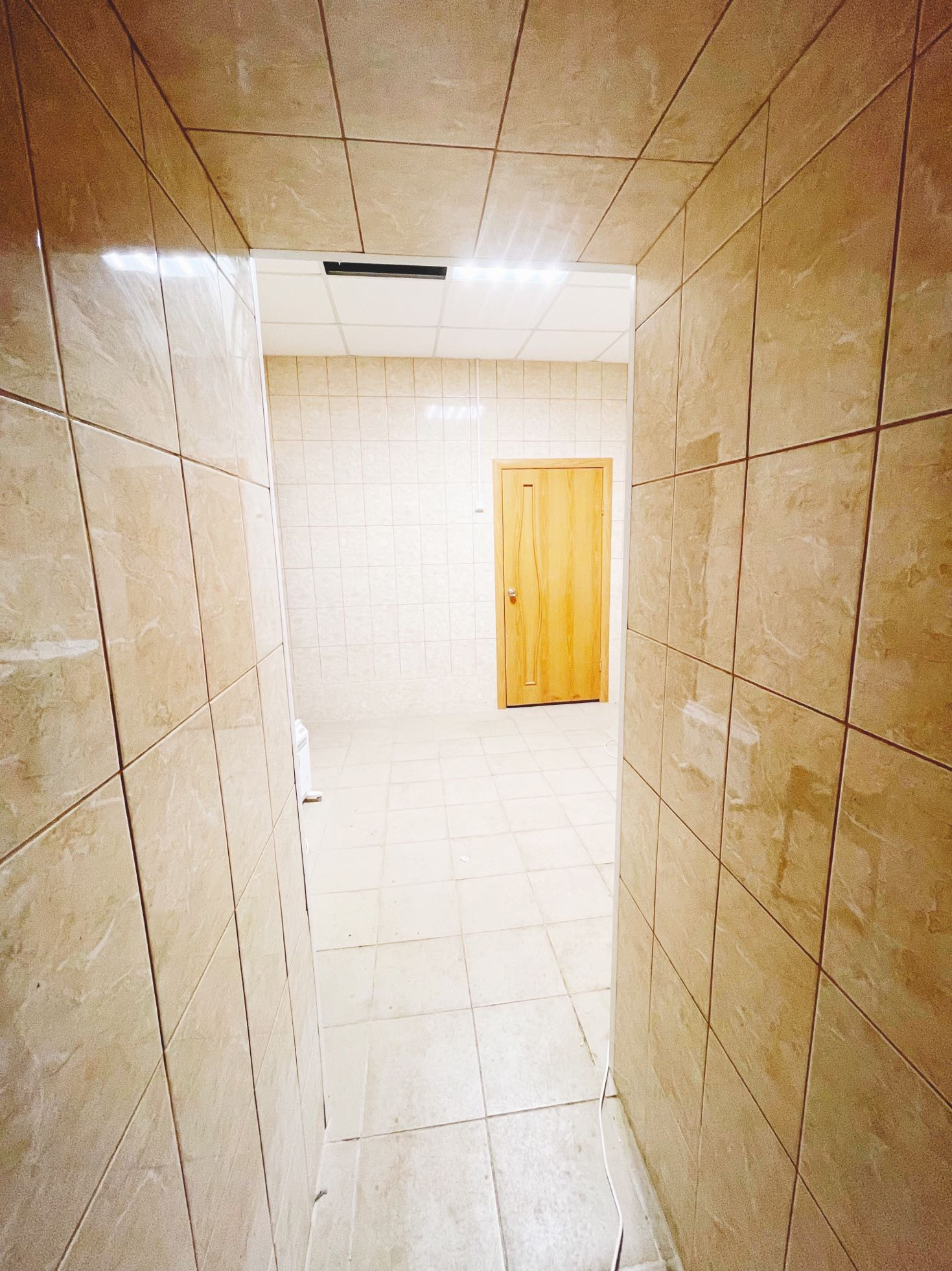 Отделка, два туалета, душевые, умывальники, и кухня,  выложены плиткой.