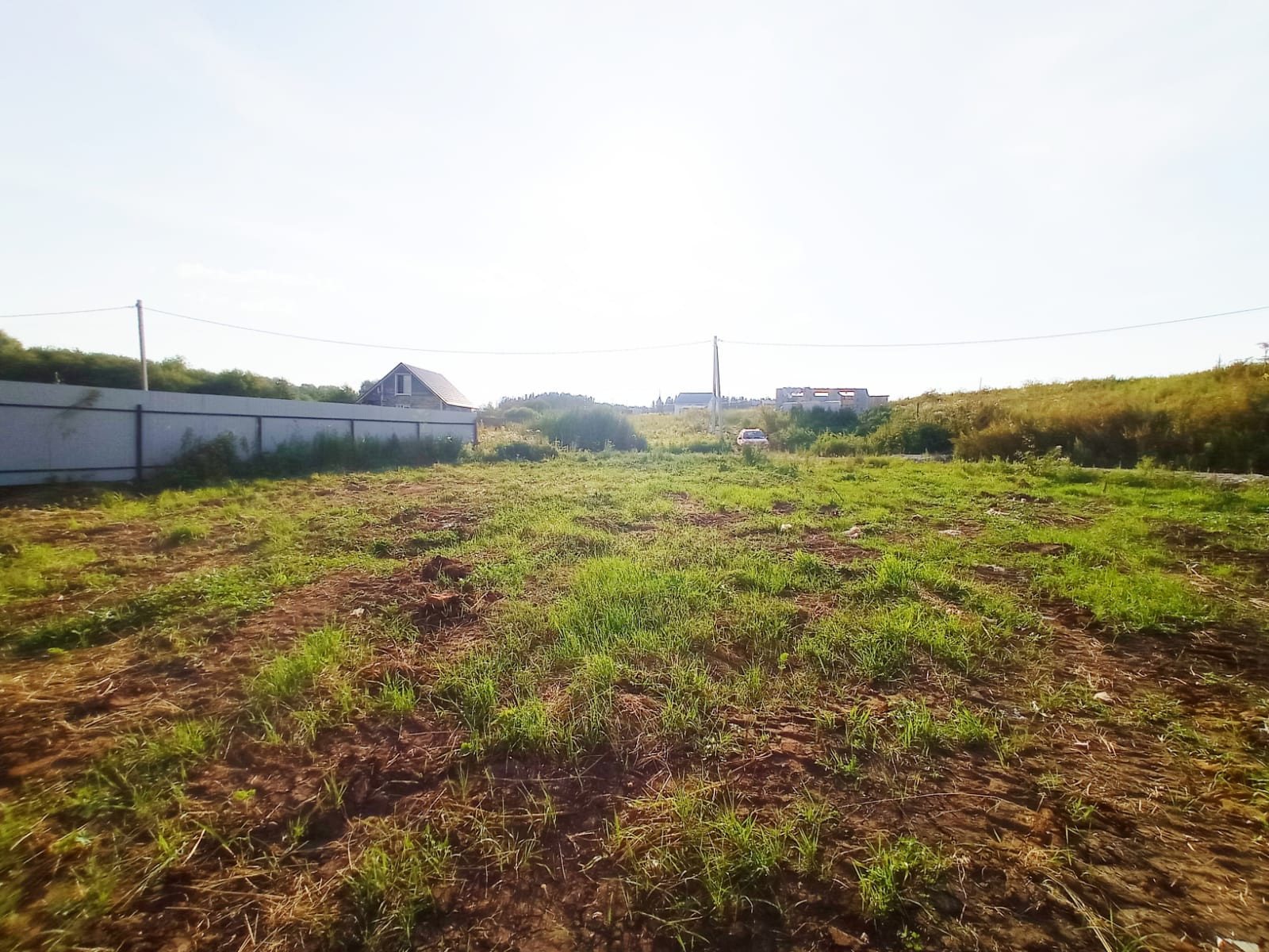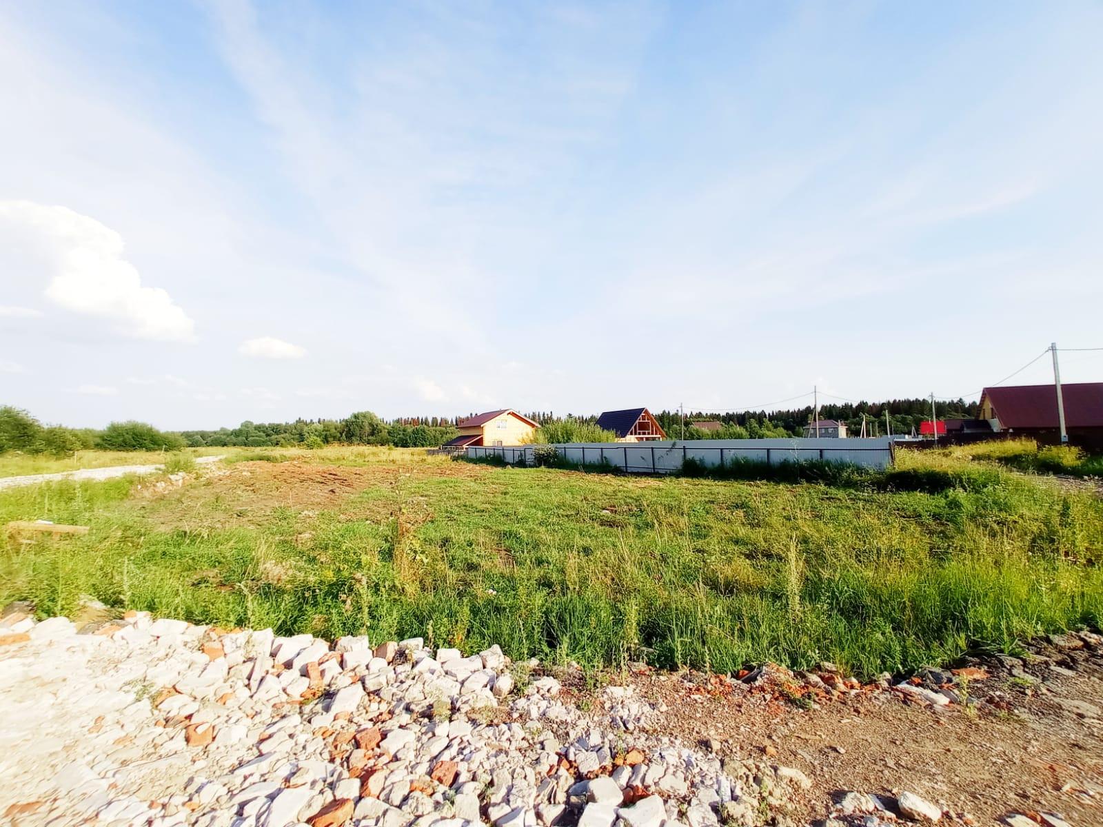 Хороший участок, огороженный с одной стороны забором.