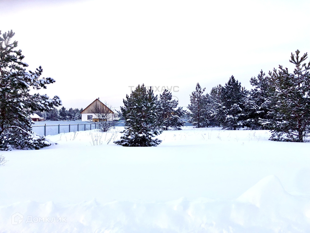 Участок ровный, по периметру с двух сторон установлен забор соседних участков.