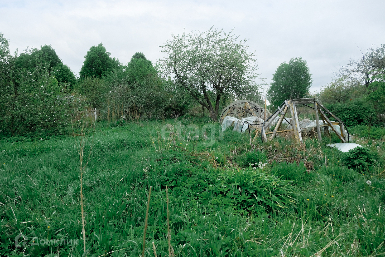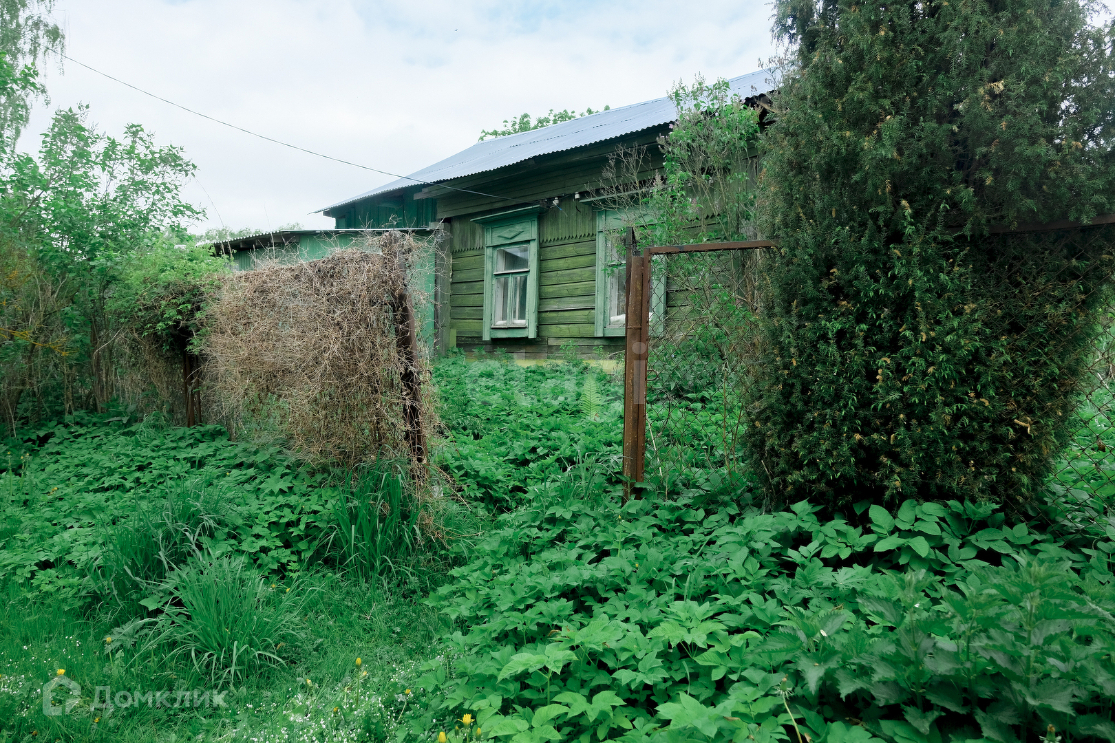 Очень красивая природа вокруг, плодородная земля, растут яблони, сливы, жимолость, смородина, сирень; есть несколько построек: теплица, погреб, сарай; огорожен сеткой-рабицей. Старый деревянный дом (1911 г. постройки под снос, но можно его использовать, пока строите новый): в доме работающая печь, три комнаты, кухня, веранда.