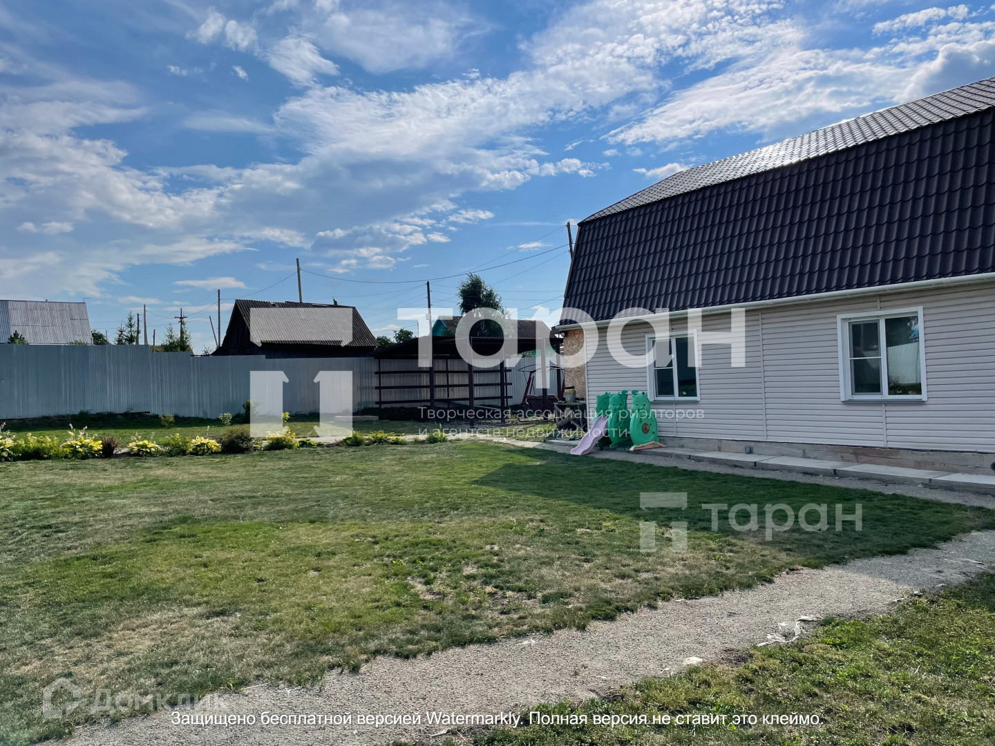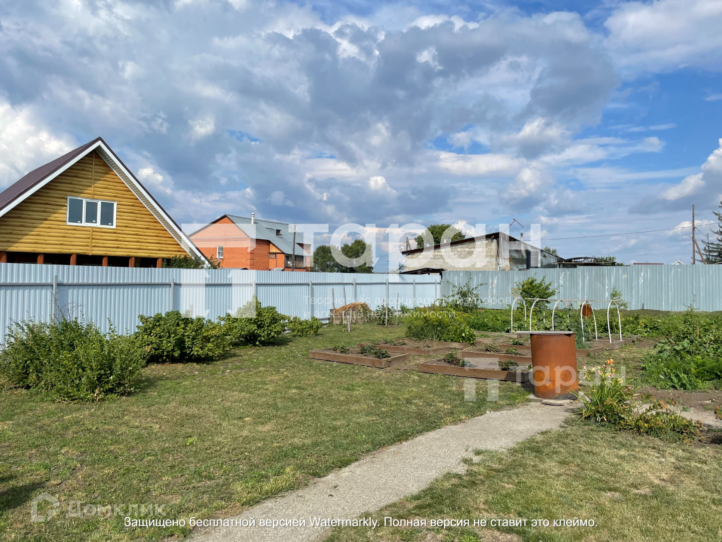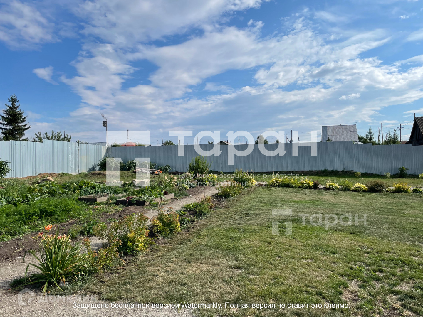 На участке плодородная земля, высажены деревья и ягодные кустарники, есть газон на котором отлично играть и отдыхать.