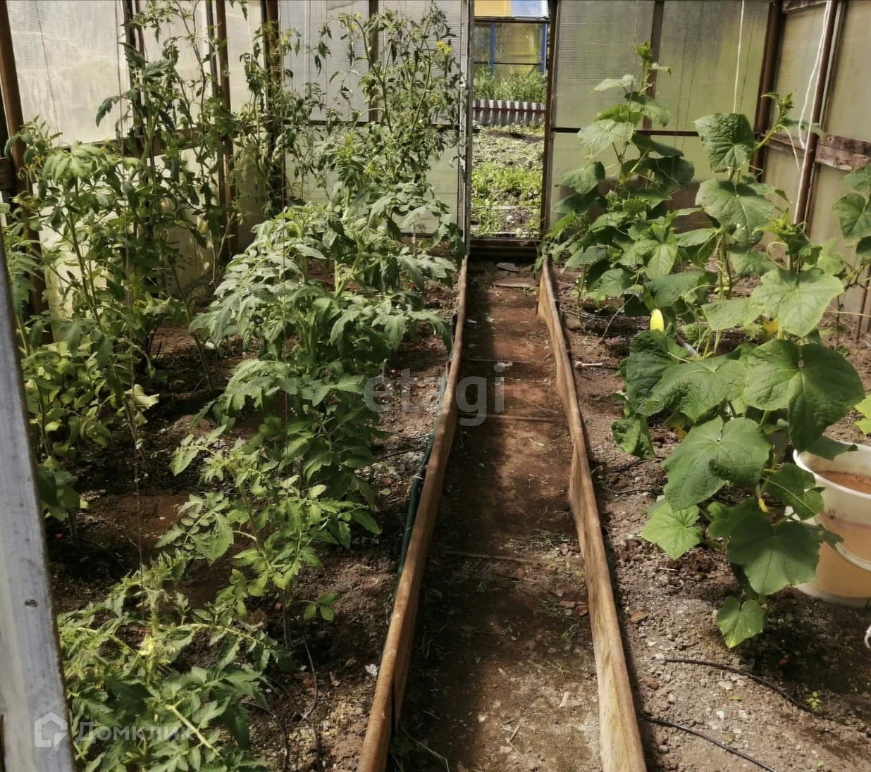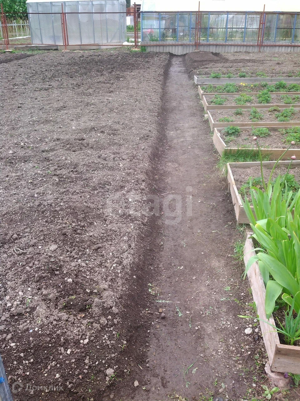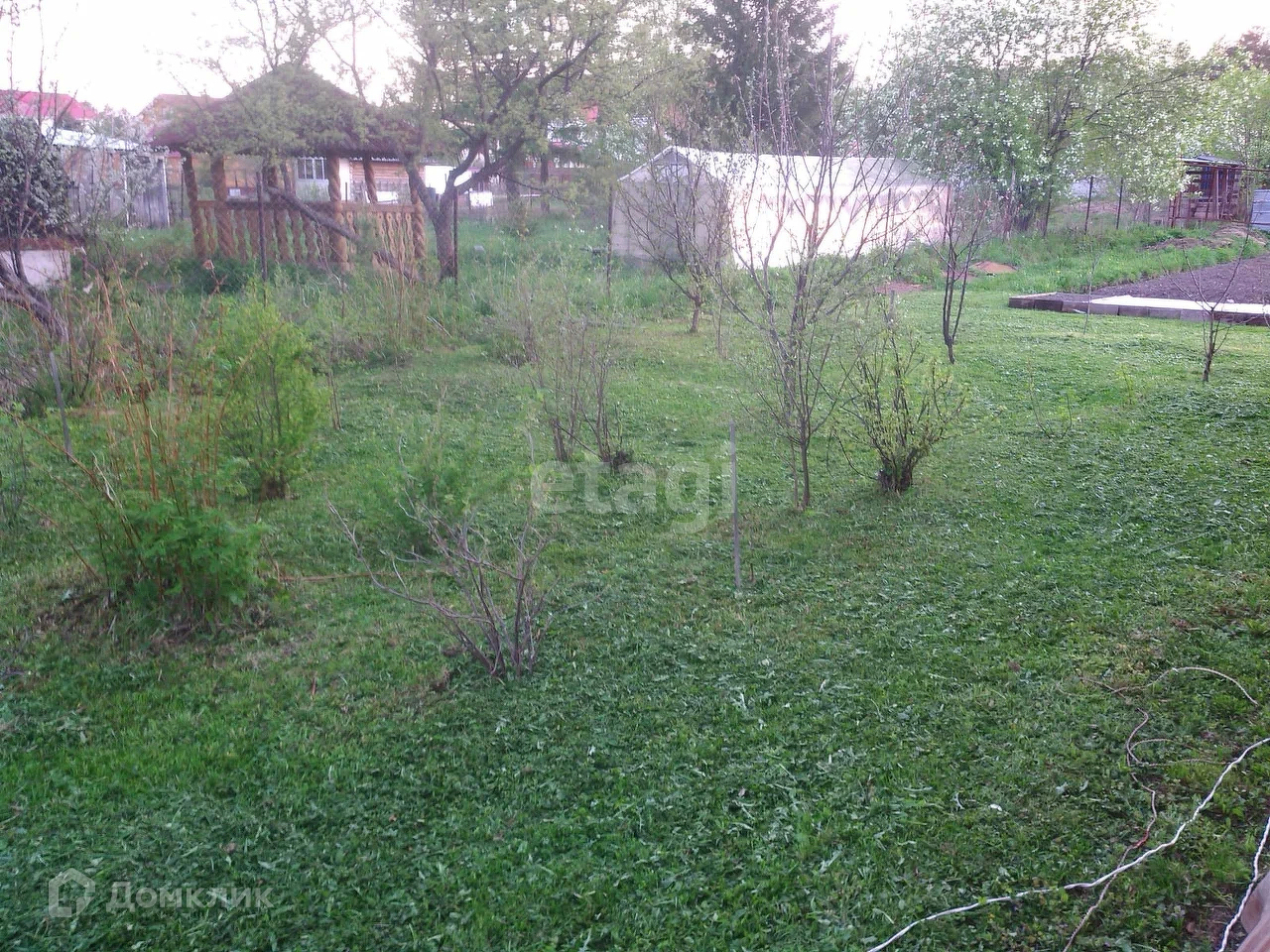 Участок 10 соток разработан, 3 яблони, 2 сливы, вишня, смородина, жимолость, малина, клубника. 2 теплицы с автополивом.